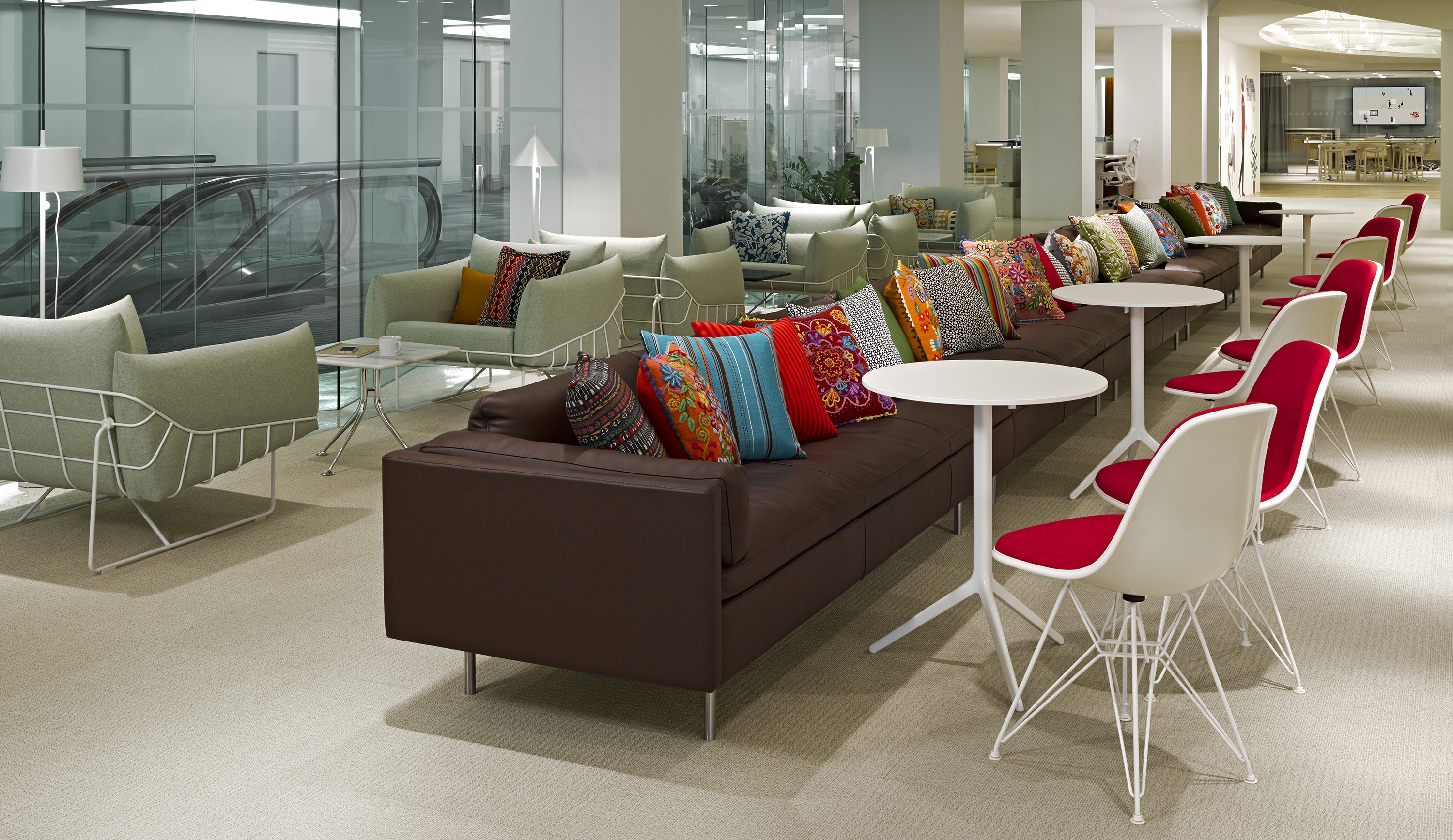 从视觉上说,柔软和体积包含在一个正式的框架,线框沙发组例证了一个反复出现的主题山姆赫克特和金科林:对比紧张。该设计的外部结构是由钢丝形成的——这是赫尔曼米勒经典设计中长期使用的材料,因为其强度和耐久性。车架内的坐垫是轮廓分明的,赫尔曼米勒(Herman Miller)最初为医疗行业开发的一种悬架技术让坐垫更加舒适。腰椎和抱枕是祭品的全部。轻便,大小不一,多用途的座椅可以轻松地变换位置,以满足不断变化的空间需求,以及在其中工作和放松的人。海克特和科林的设计体现了我们今天的生活方式。选择包括白色或黑色框架与多个室内装潢选择在两人和三人座位的沙发