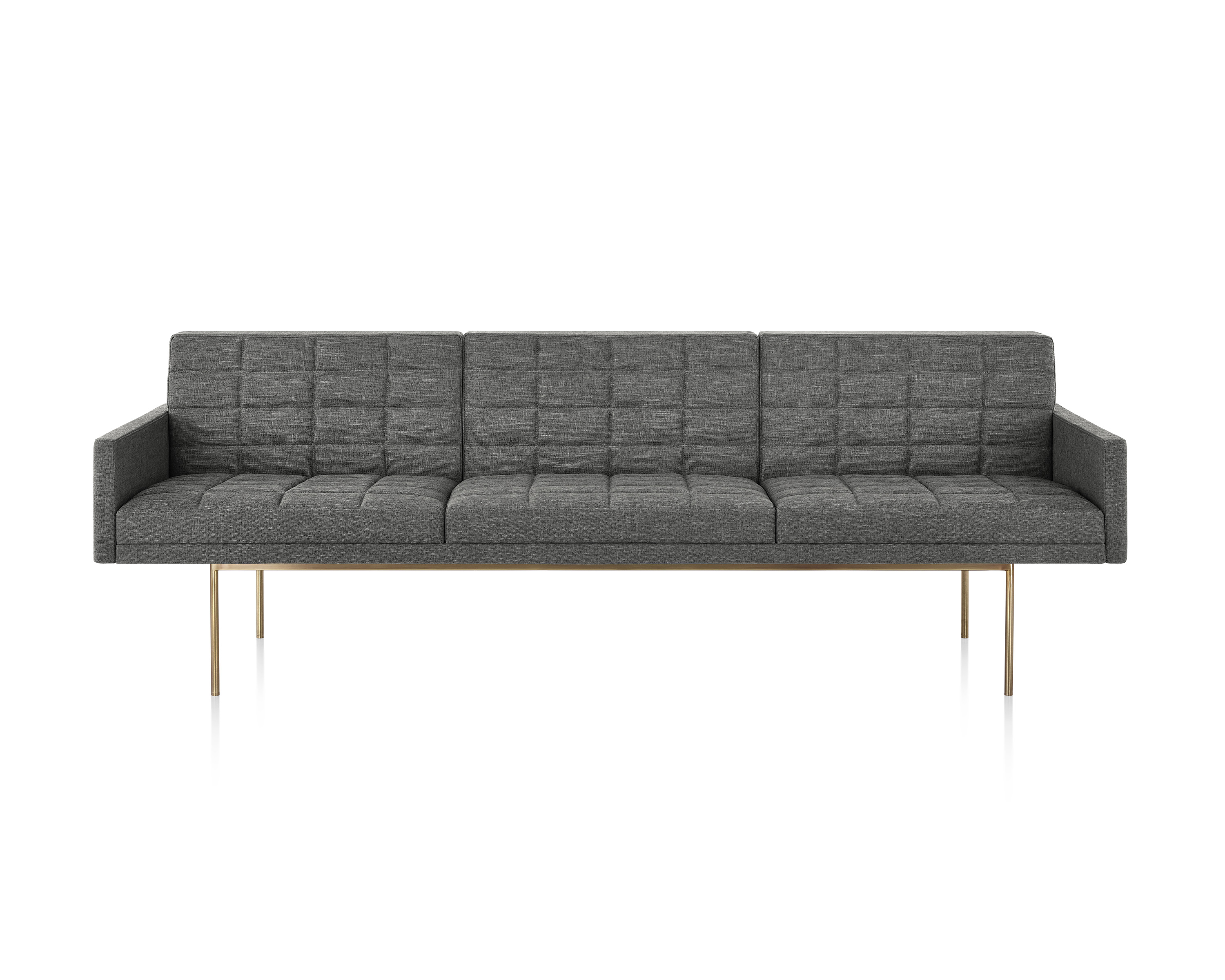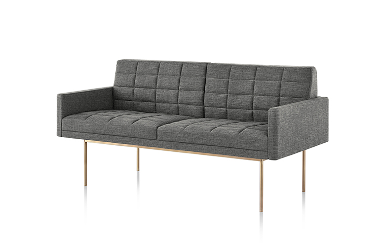 Tuxedo沙发悬挂在狭窄的钢腿上,有多种金属饰面可供选择,由于背部和(可选)臂形成的水平带,Tuxedo Sofa的轮廓低而光滑。精心设计的室内装潢覆盖了纤薄的双密度泡沫垫,进一步增强了设计的轻巧外观。每件都有各种各样的室内装潢,有或没有绗缝。