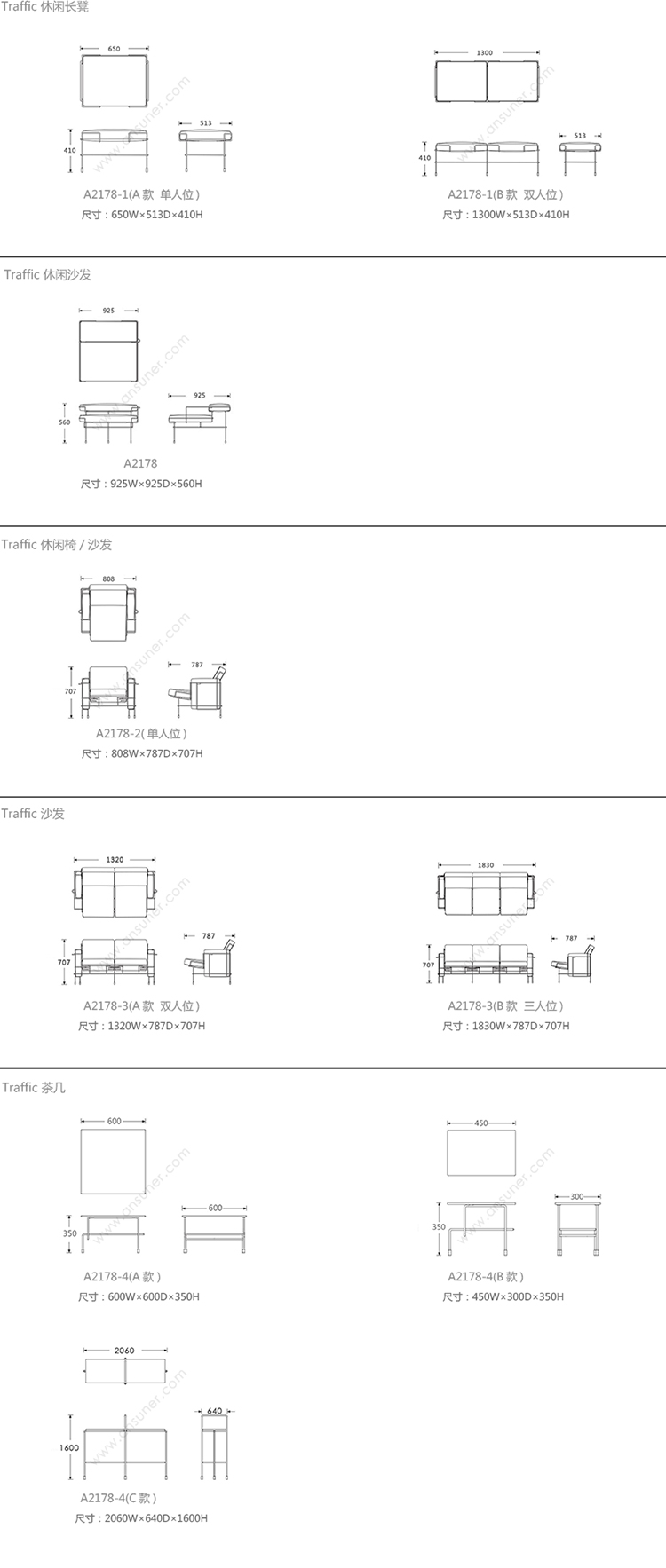 Traffic 系列尺寸/示意图