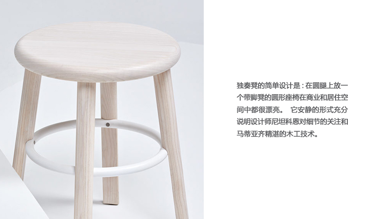 在商业和居住空间中都很漂亮。它安静的形式充分说明设计师尼坦科恩对细节的关注和马蒂亚齐精湛的木工技术。独奏凳子的选项也是灵活的,从两个不同的高度选择不同的木材完成,和四个脚凳颜色选项。