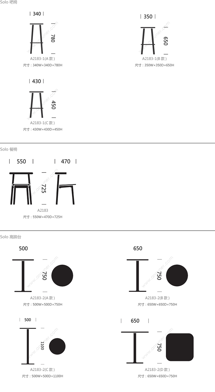 Solo 系列尺寸/示意图