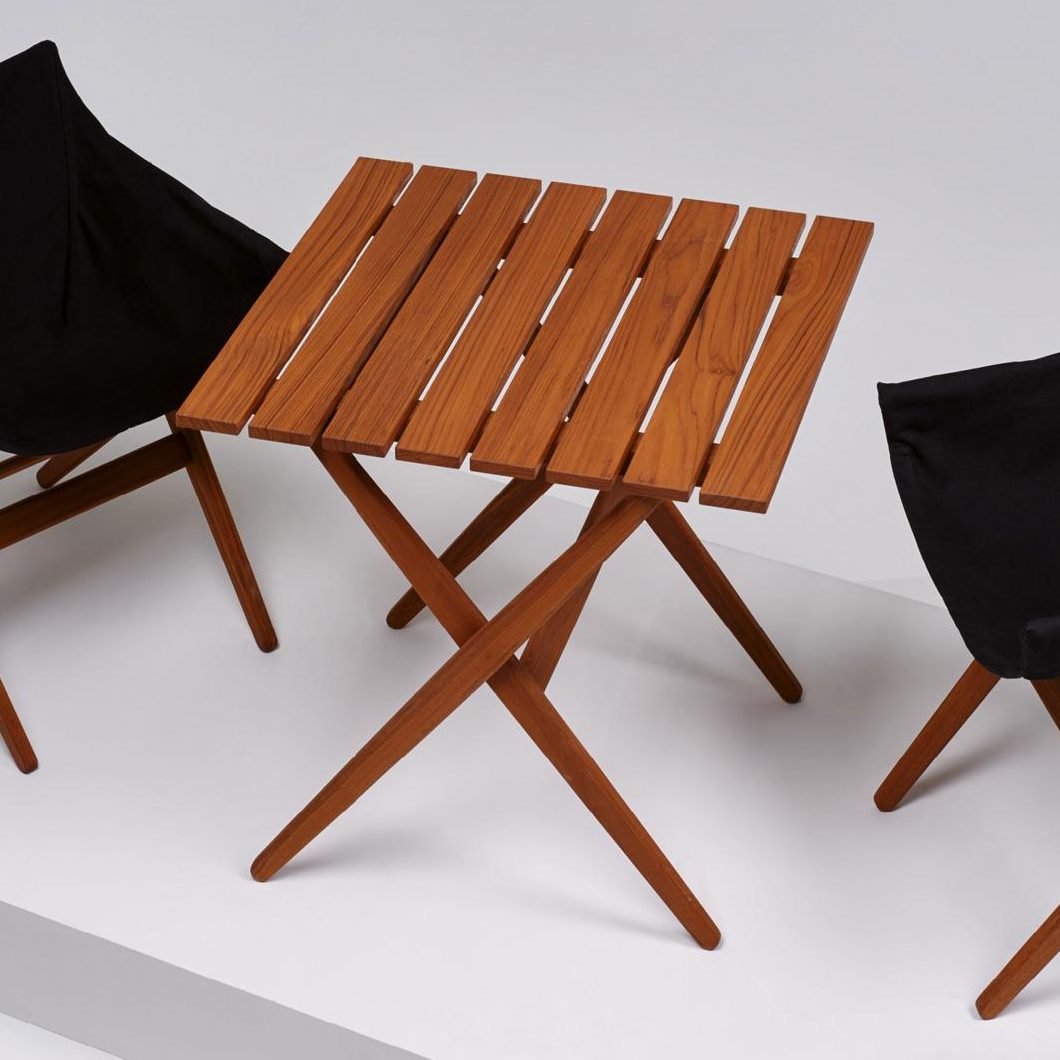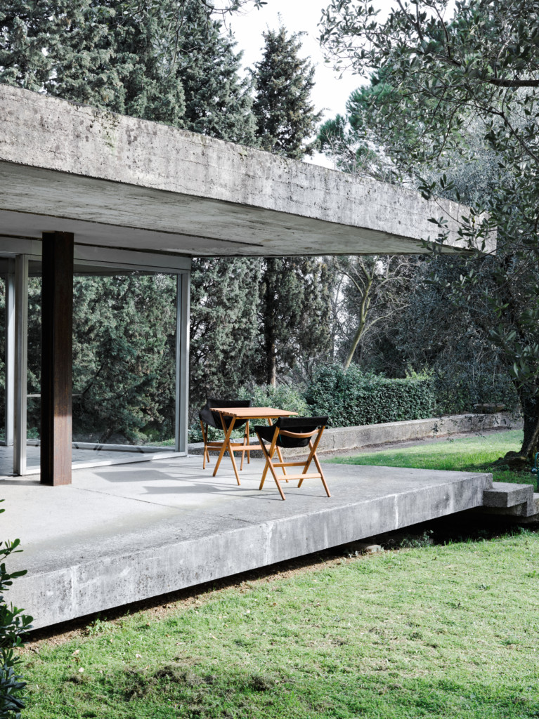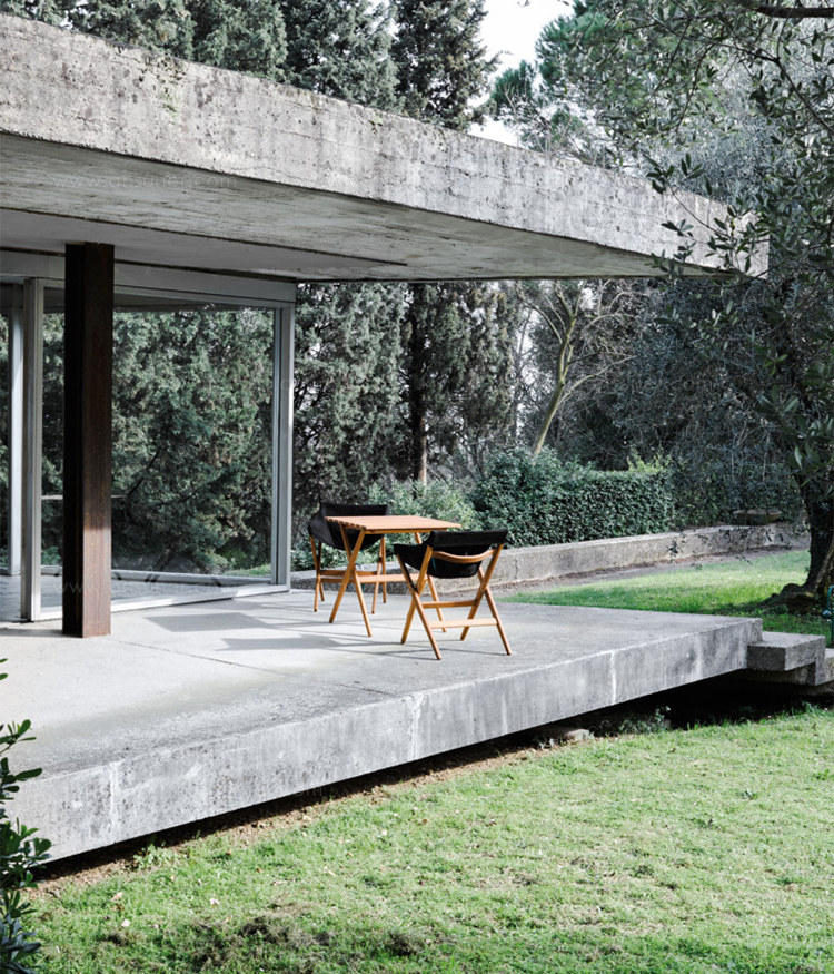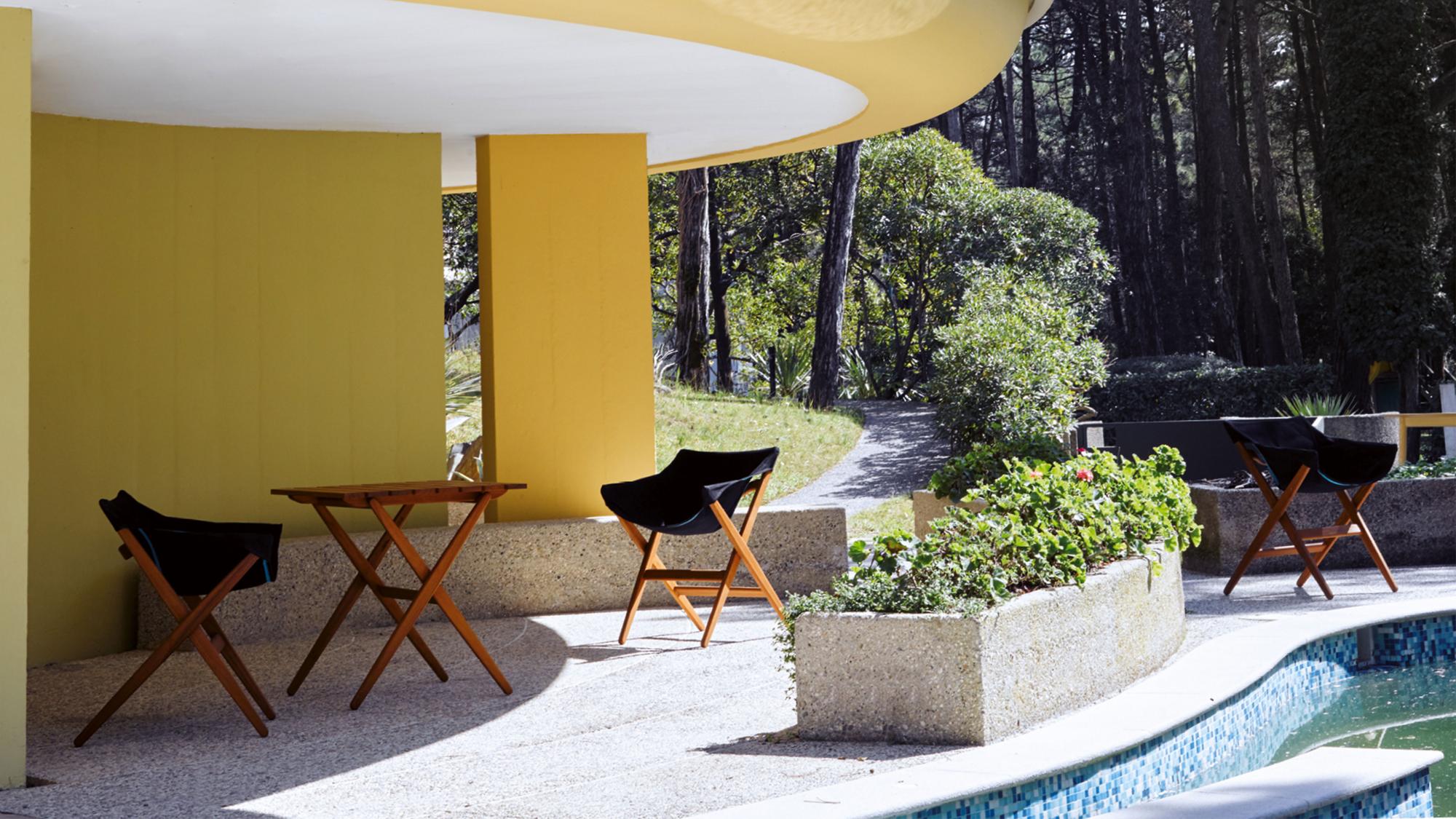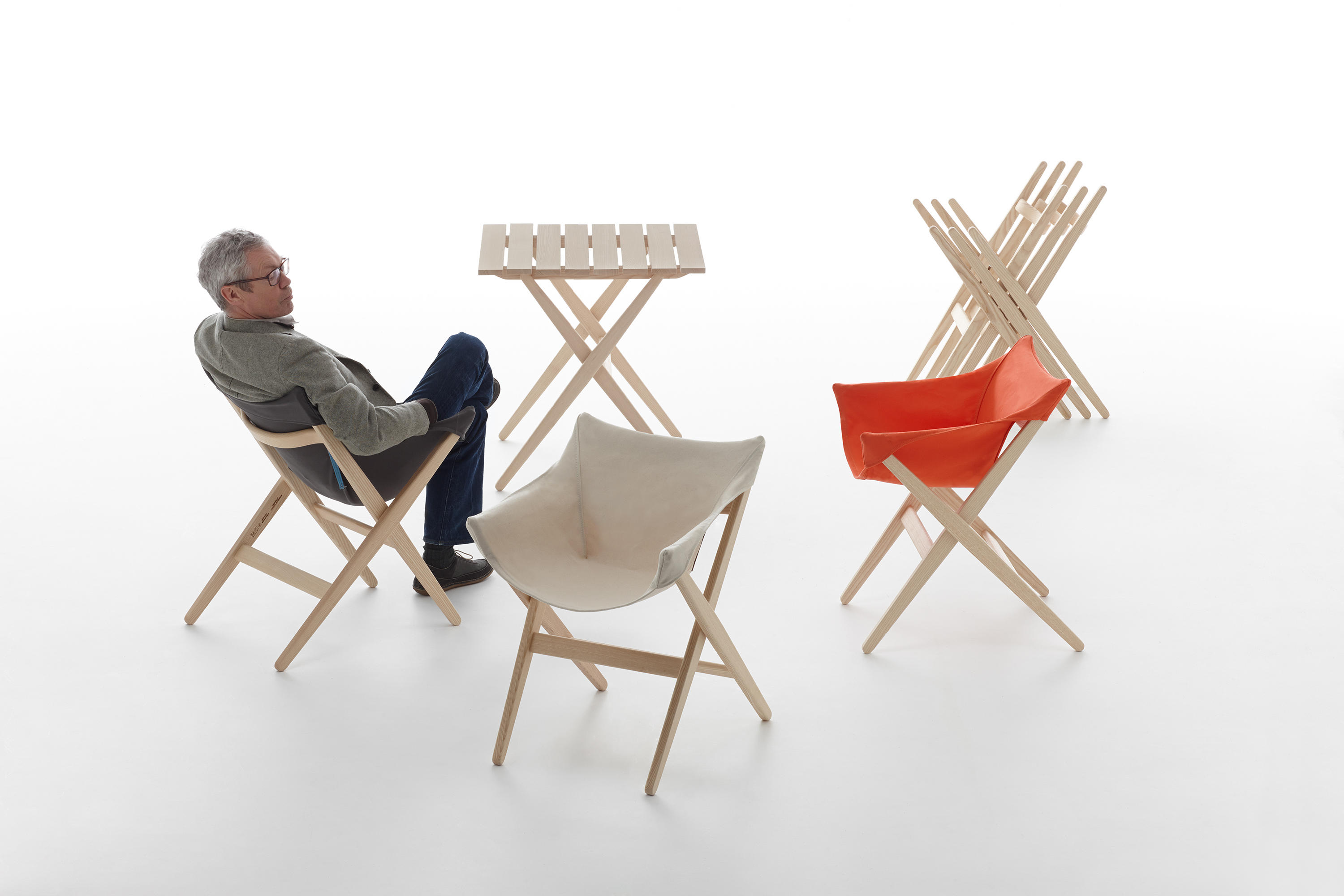 Fionda系列家具的特点是一个固体灰折叠框架与座椅制成