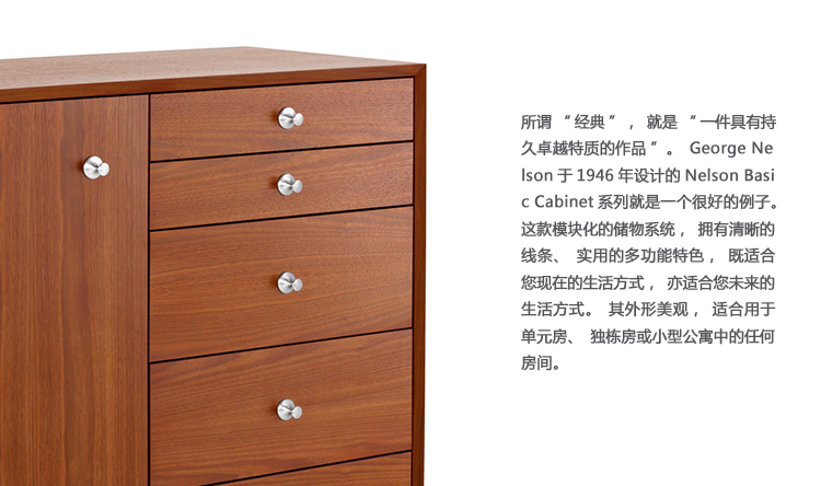 经典的定义是“一部经久不衰的优秀作品”。1946年乔治·纳尔逊设计的纳尔逊nelson basic cabinet系列就是一个完美的例子。整洁、实用、多功能的模块化存储系统适合你现在的生活方式,也适合你明天的生活方式。它看起来很好,在你刚开始住的公寓的任何房间,你搬进的房子,你缩小的公寓里都很好用。
