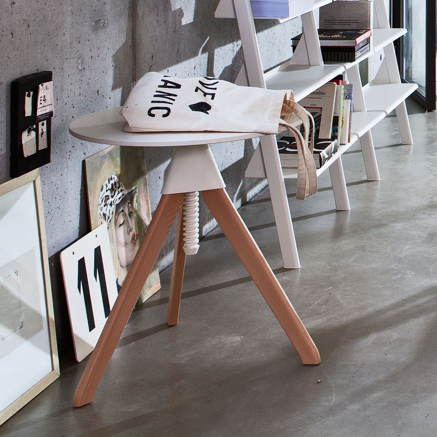 Topsy可调高度桌是Konstantin Grcic系列野生束系列的一部分。这三条腿的桌子是由实心的山毛榉木材和机械塑料零件制成.由于它的平稳运行机制,该桌易于调整,便于在各种场合中使用。Topsy是在各种环境工作,娱乐和私人的多功能选择。它可以作为一个可调节的桌子在一个角落,作为一个多用途的给餐厅使用,或作为儿童在幼儿园的桌子。