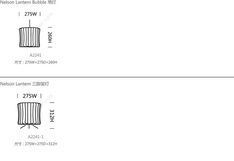 Nelson Lantern Bubble 系列尺寸/示意图