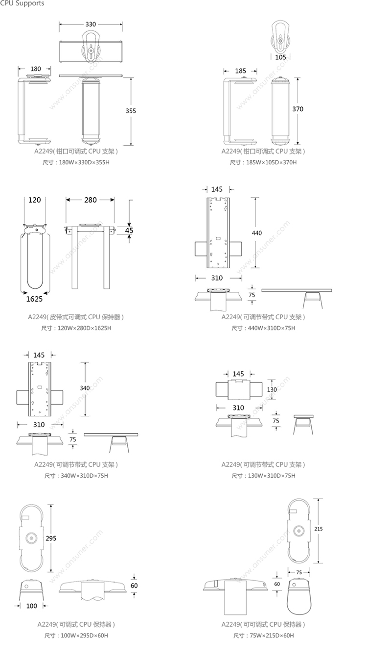 CPU Supports 系列尺寸/示意图