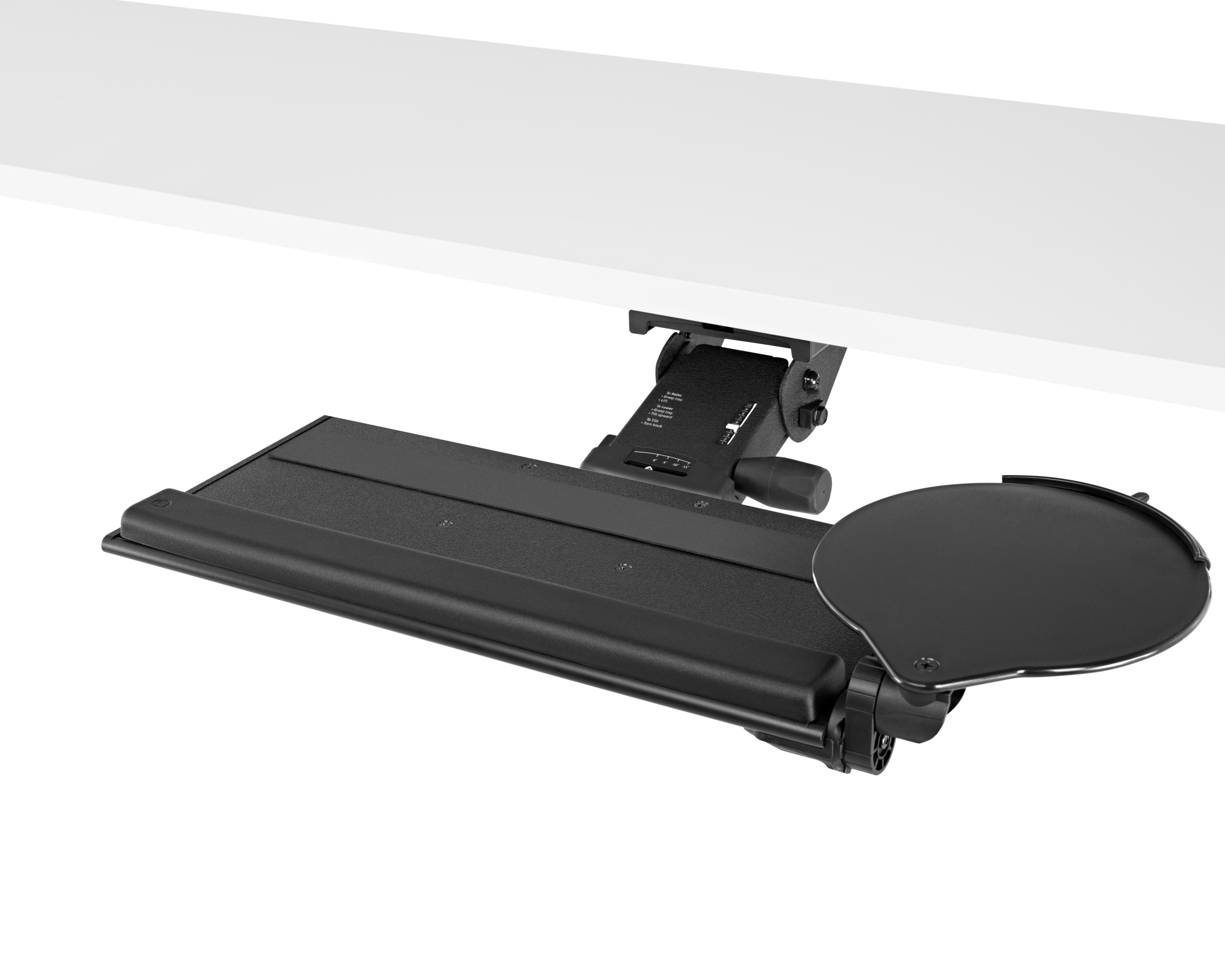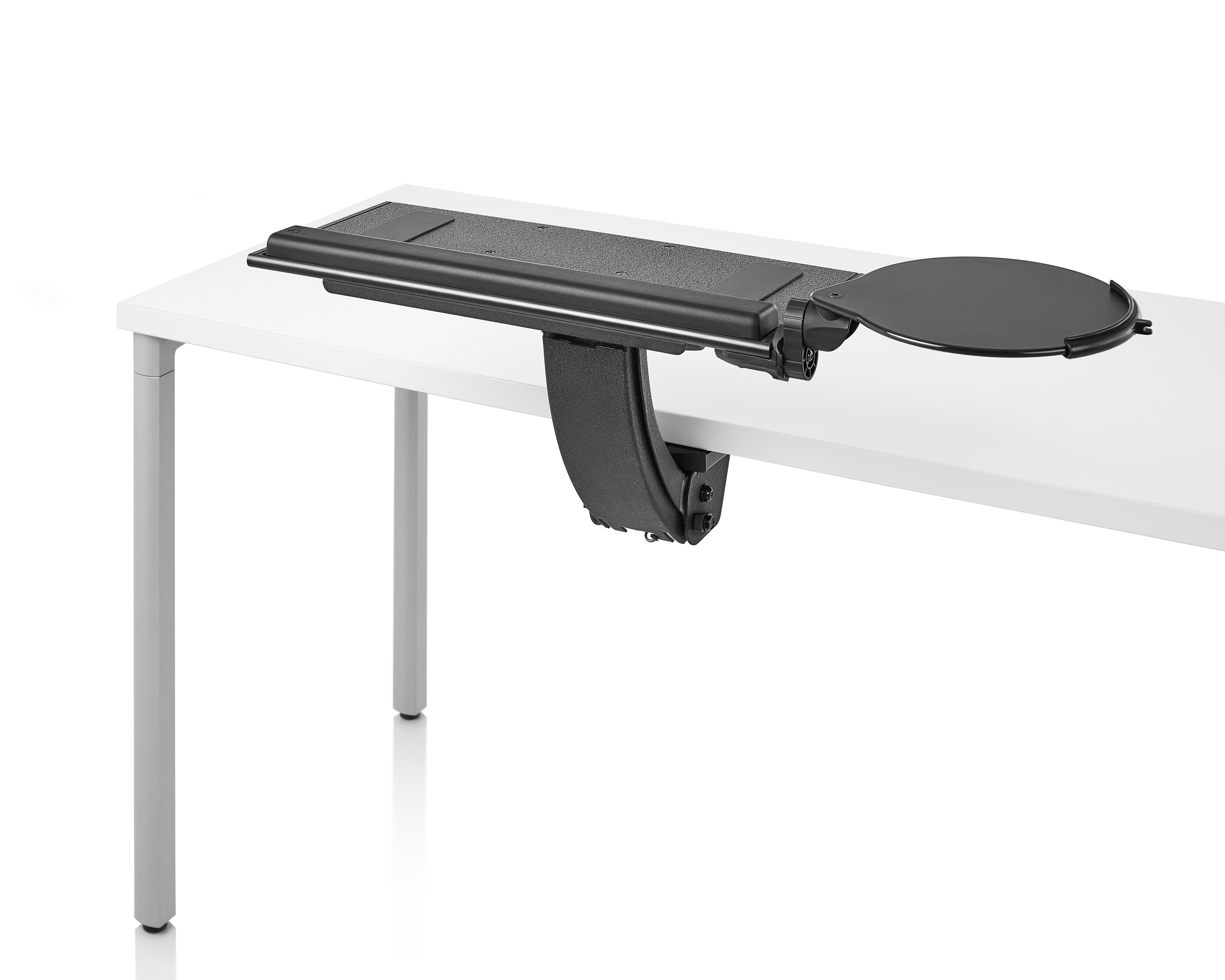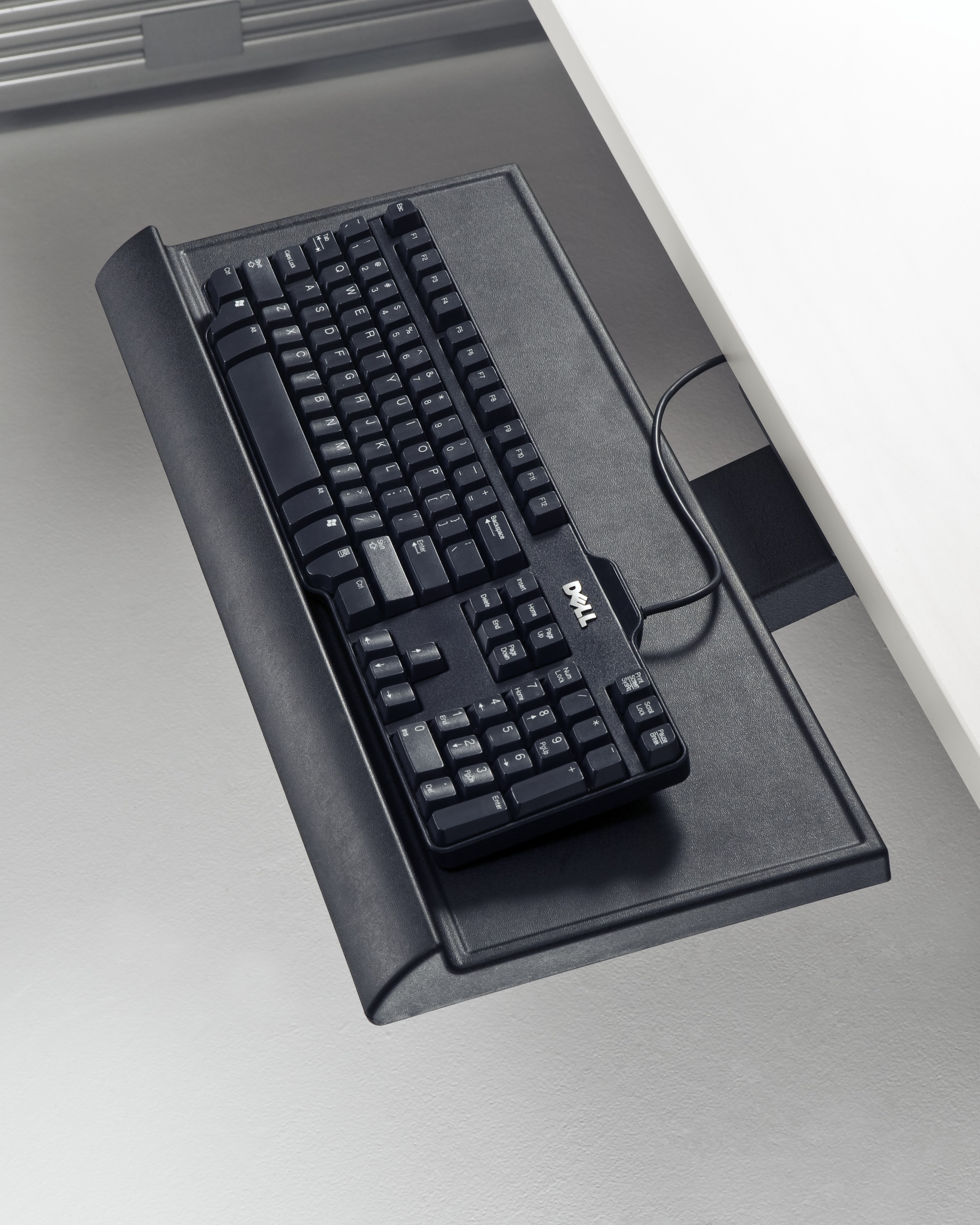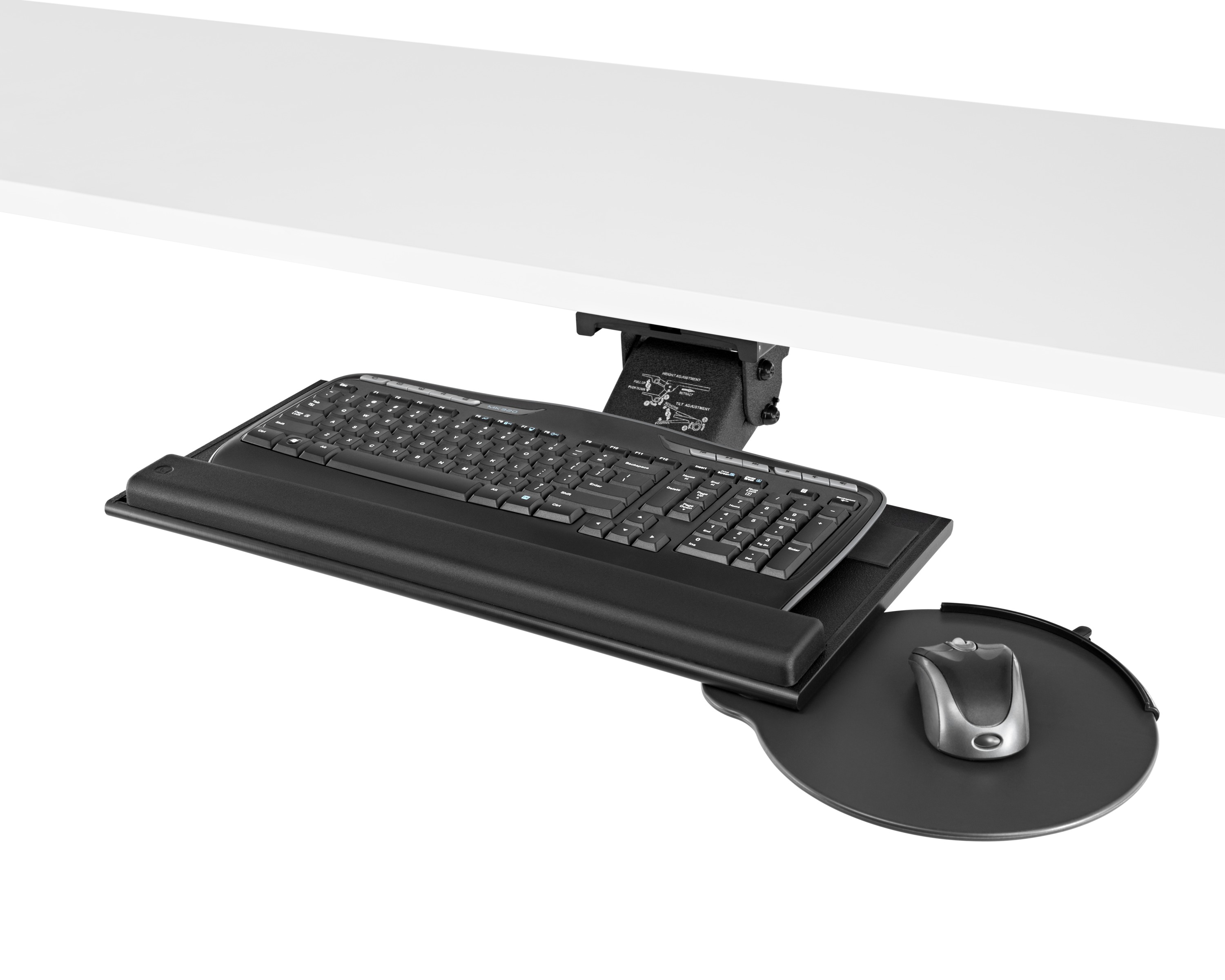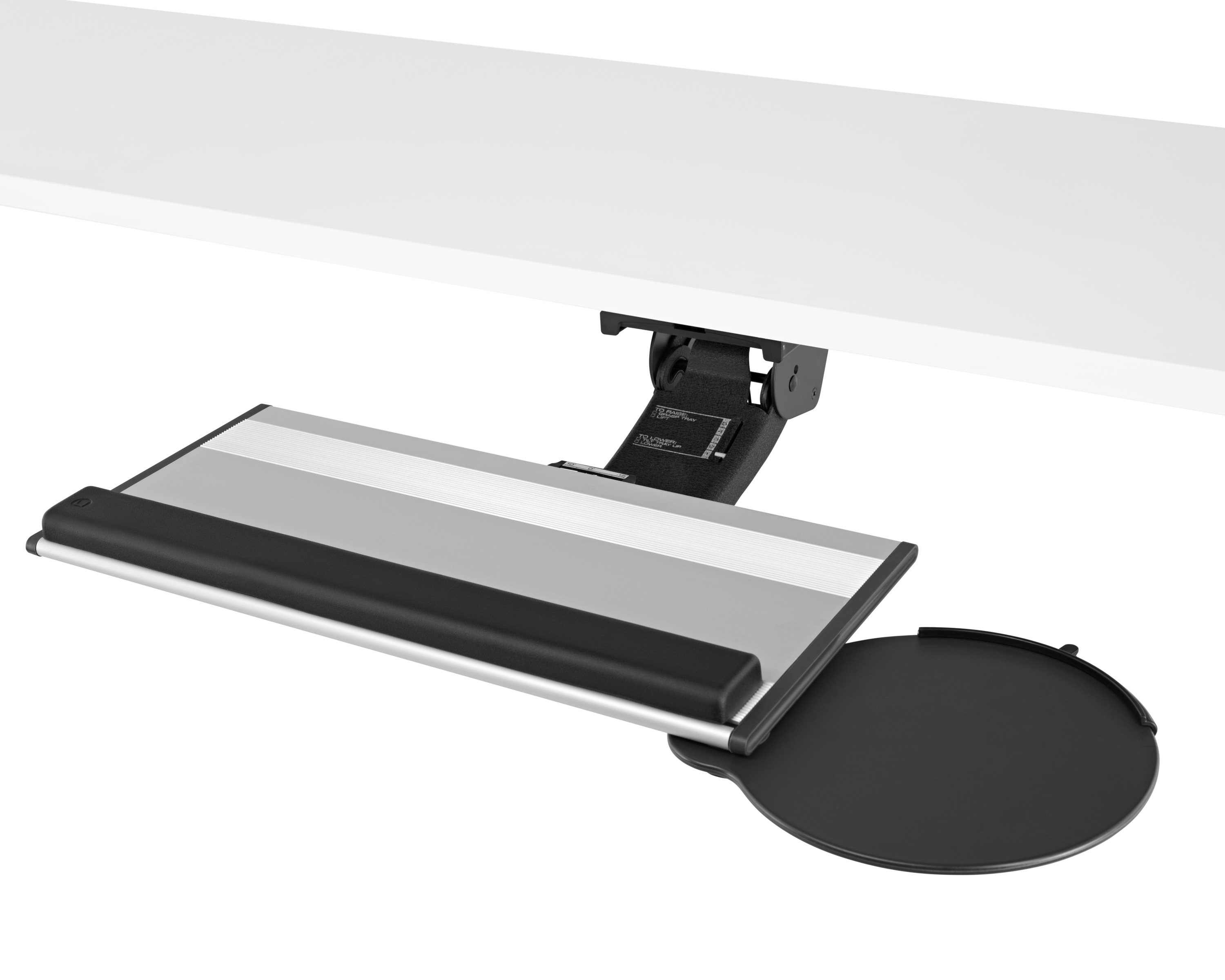 为了像你一样努力工作,我们的键盘支持连接到工作表面的底部,使你的键盘表面在适和你身体定位的高度和角度。高度和倾斜的调整范围很广,确保了所有人和家具的健康位置。当你需要打字的时候,机械装置就会伸出来,当你不使用时,机械装置就在工作表面下整齐的储存