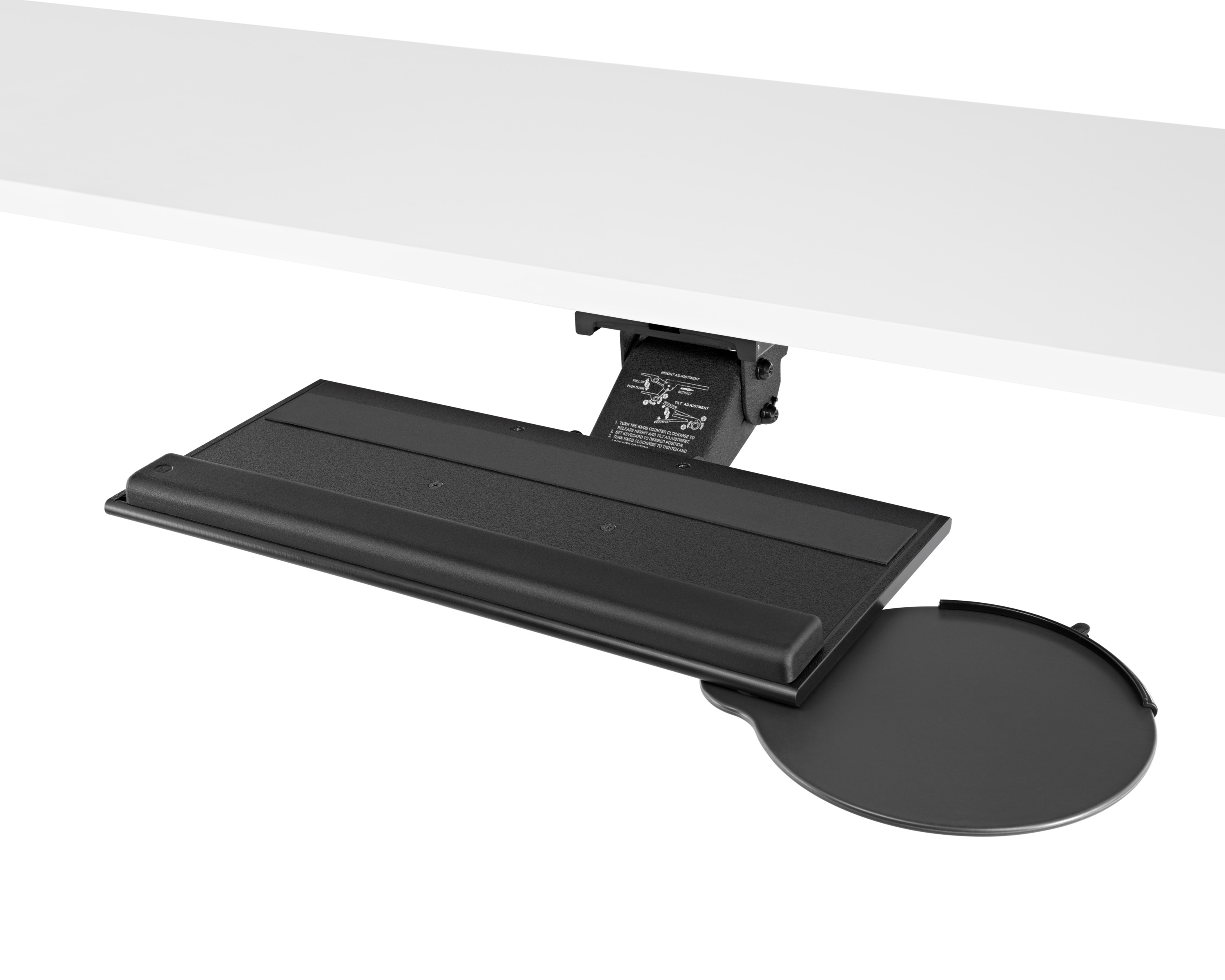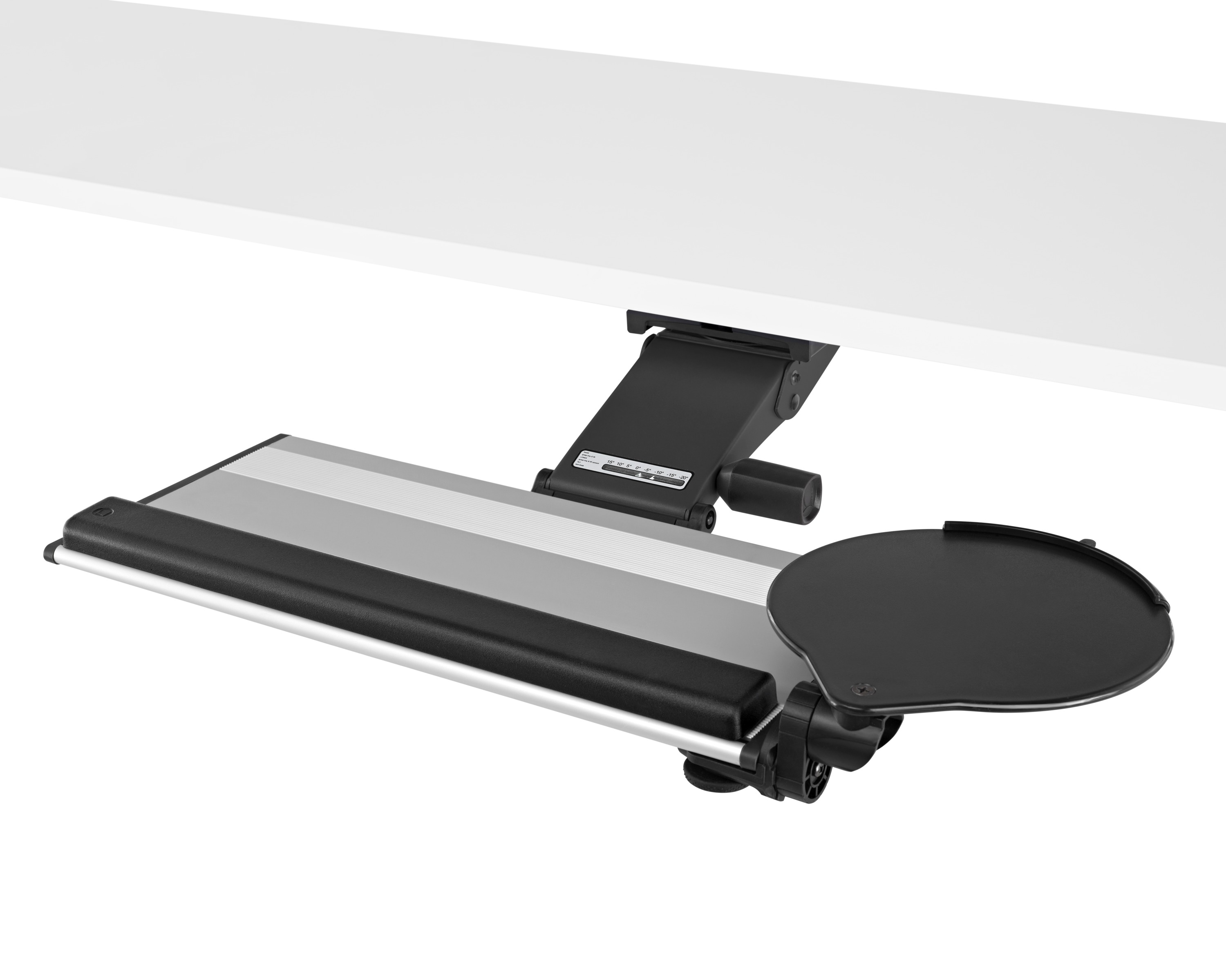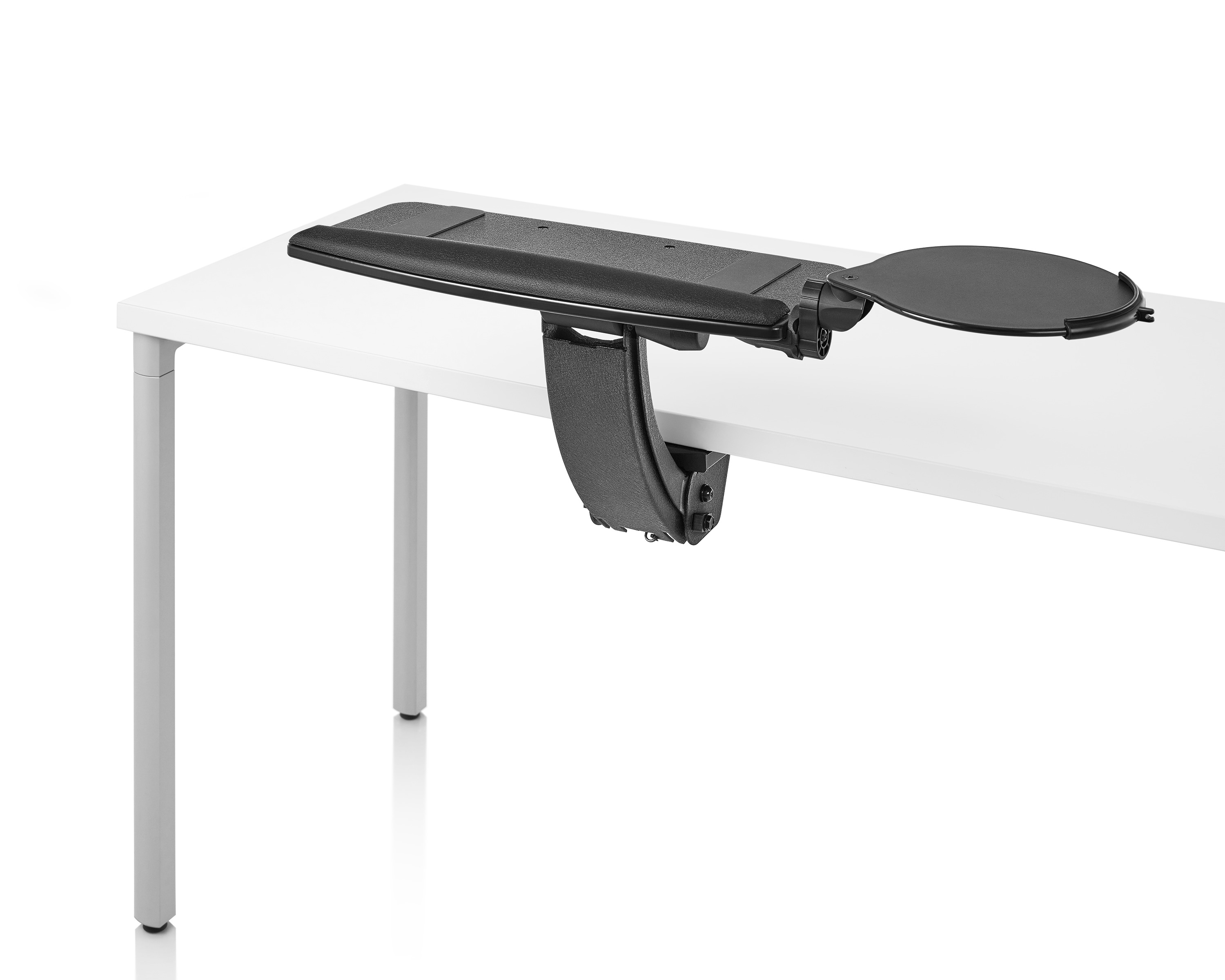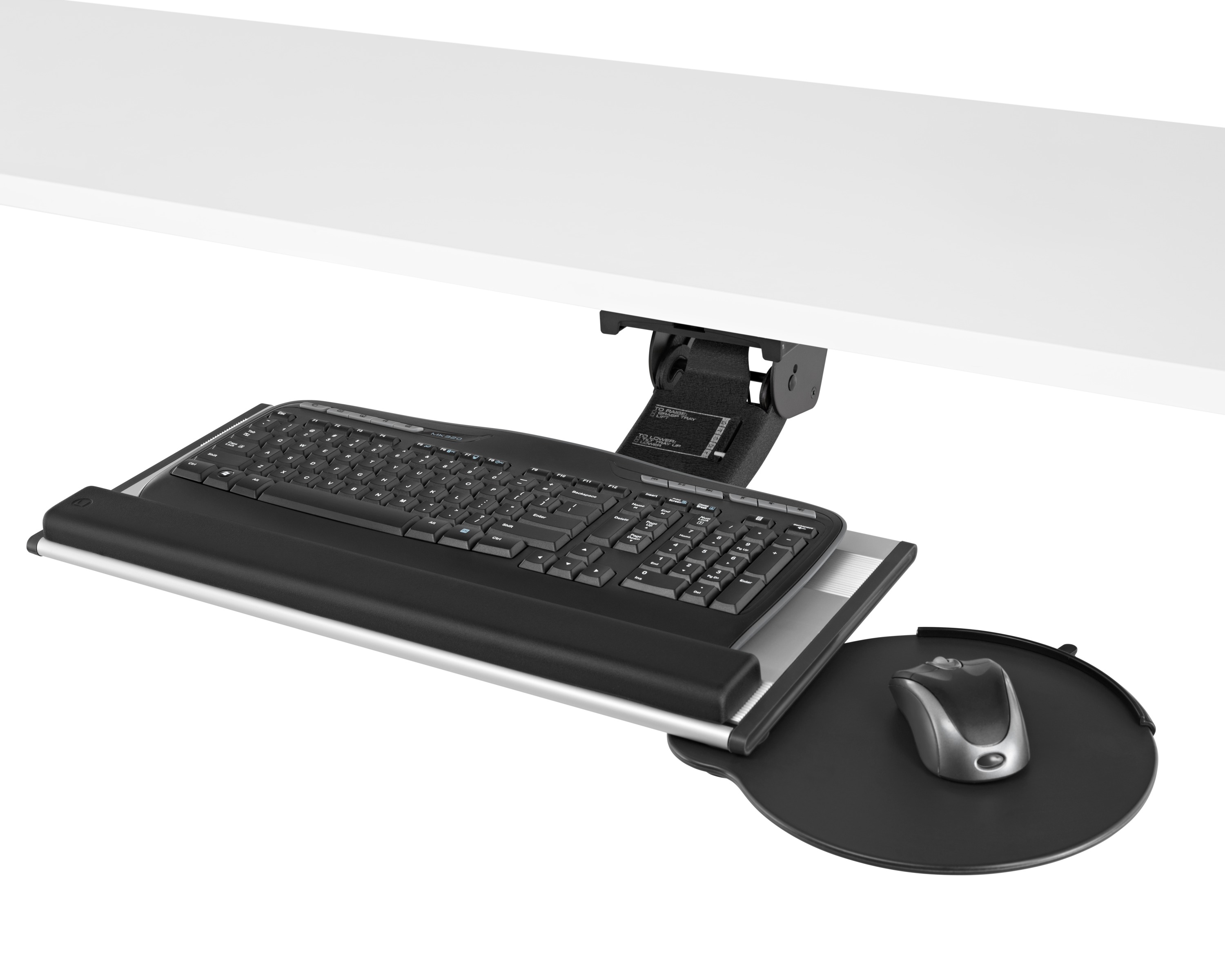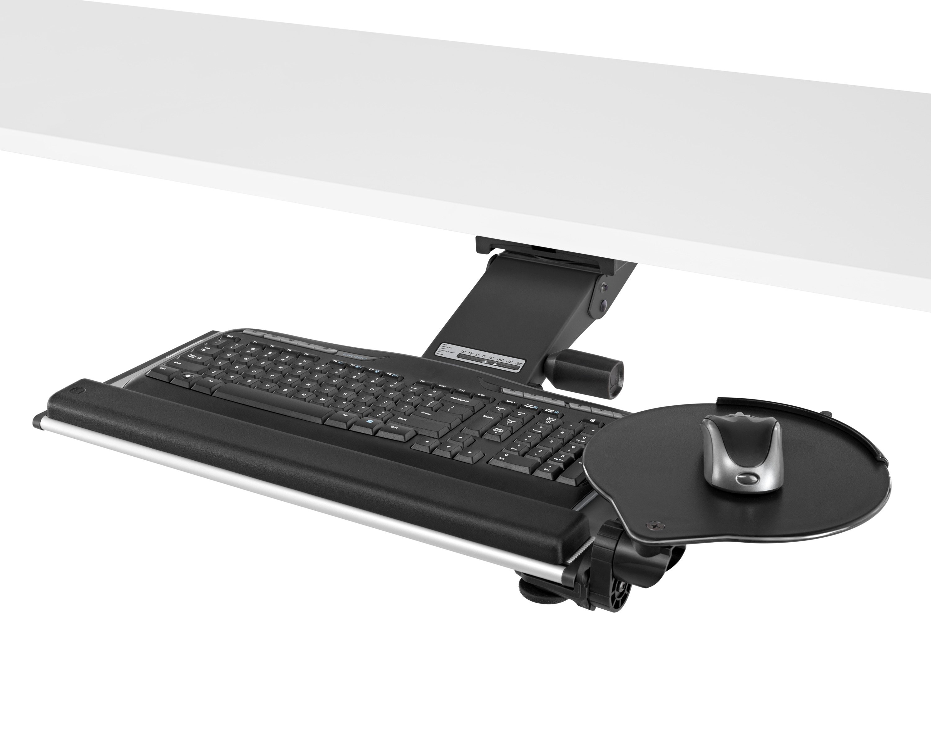 为了像你一样努力工作,我们的键盘支持连接到工作表面的底部,使你的键盘表面在适和你身体定位的高度和角度。高度和倾斜的调整范围很广,确保了所有人和家具的健康位置。当你需要打字的时候,机械装置就会伸出来,当你不使用时,机械装置就在工作表面下整齐的储存