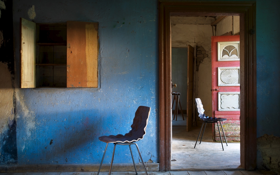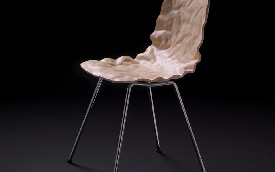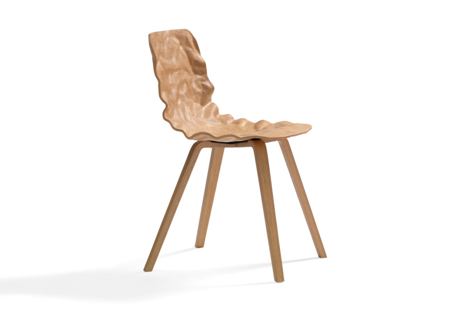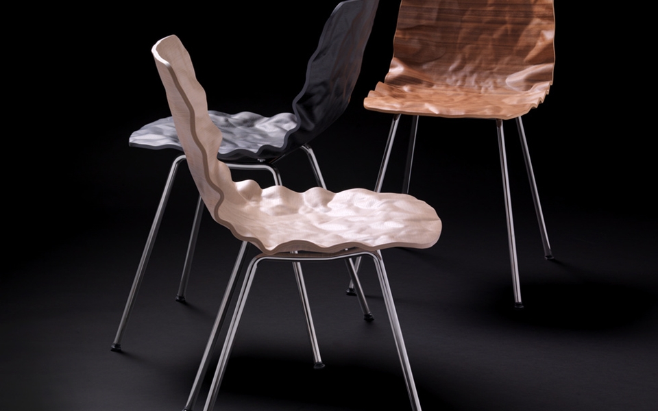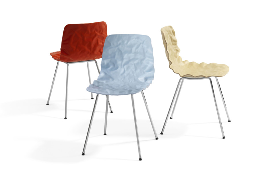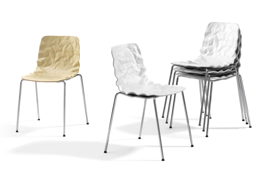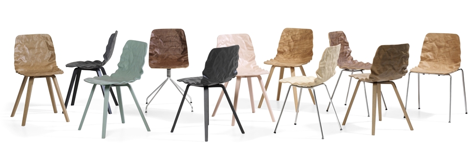 旋转椅在层胶压缩成型白蜡木。制成的普通(未3D)单板彩色的或天然的涂漆了绿色铬,铬III或上漆的钢。