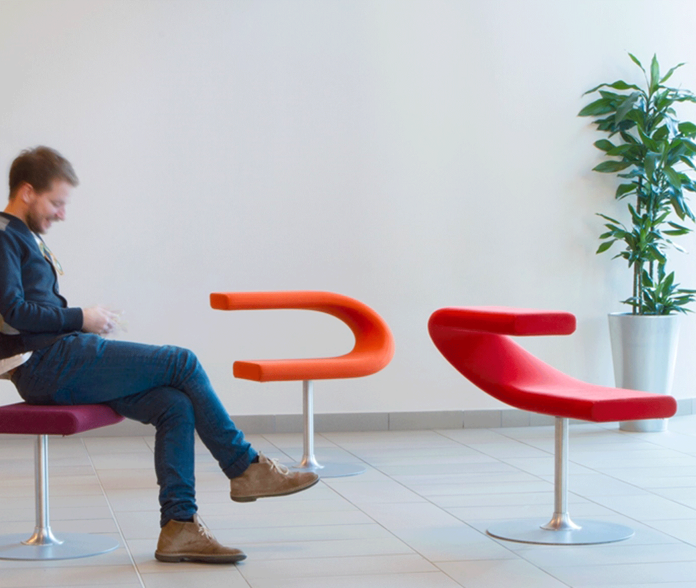 创新C-创新C是多功能旋转座椅。在创新C中,您可以随意坐着,没有靠背,没有前椅,靠背也可以用作桌子。可以在附加桌子上使用,也可以将椅子用作工作站。Innovation C可以轻松地放置在许多不同的环境中,从机场到候车室再到图书馆和学校。旋转式不锈钢立柱底座在涂银的踏板上。内部座高480 mm,总高750 mm,座宽350 mm,总宽700 mm,总深650 mm,重量kg 23。