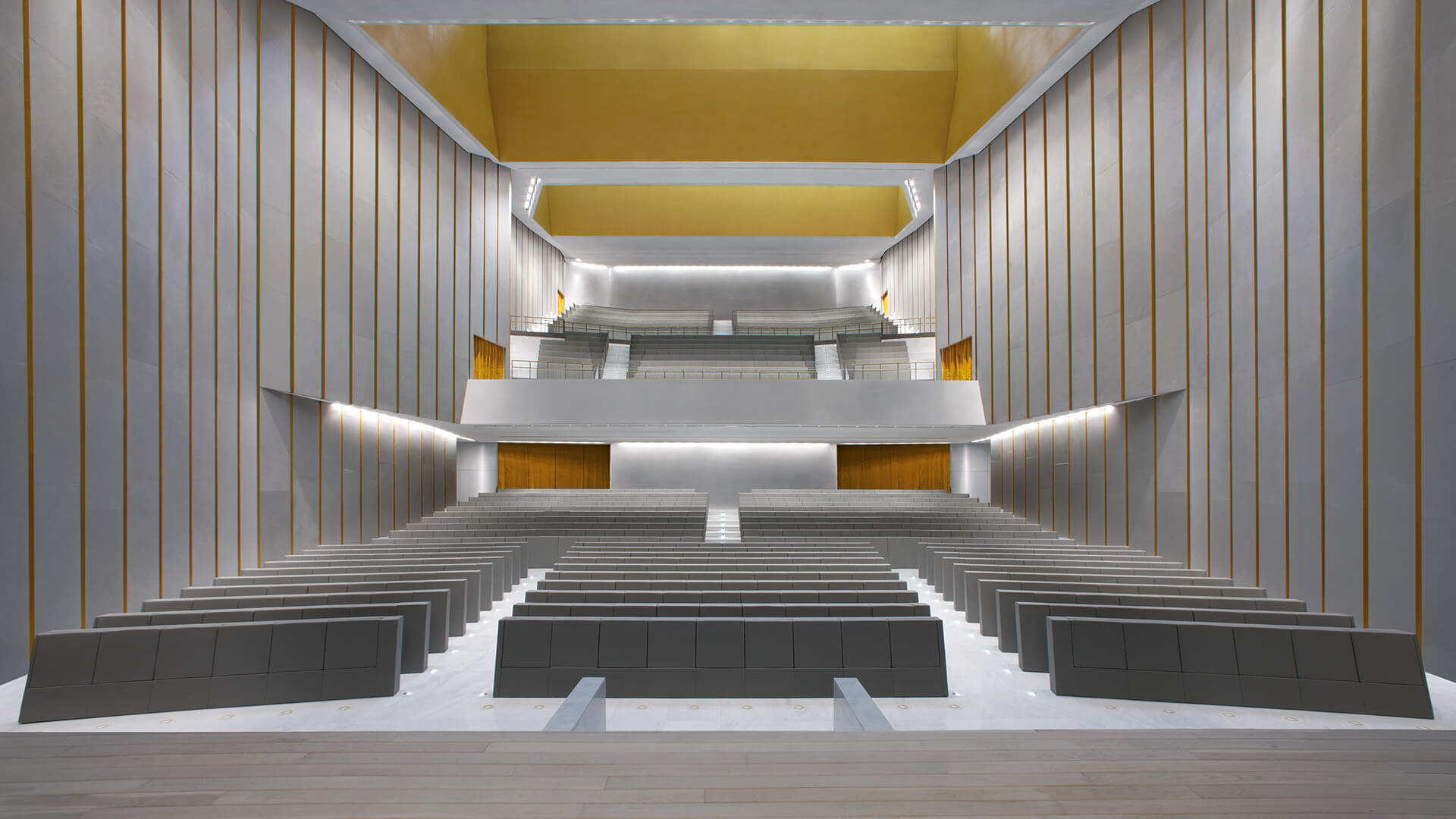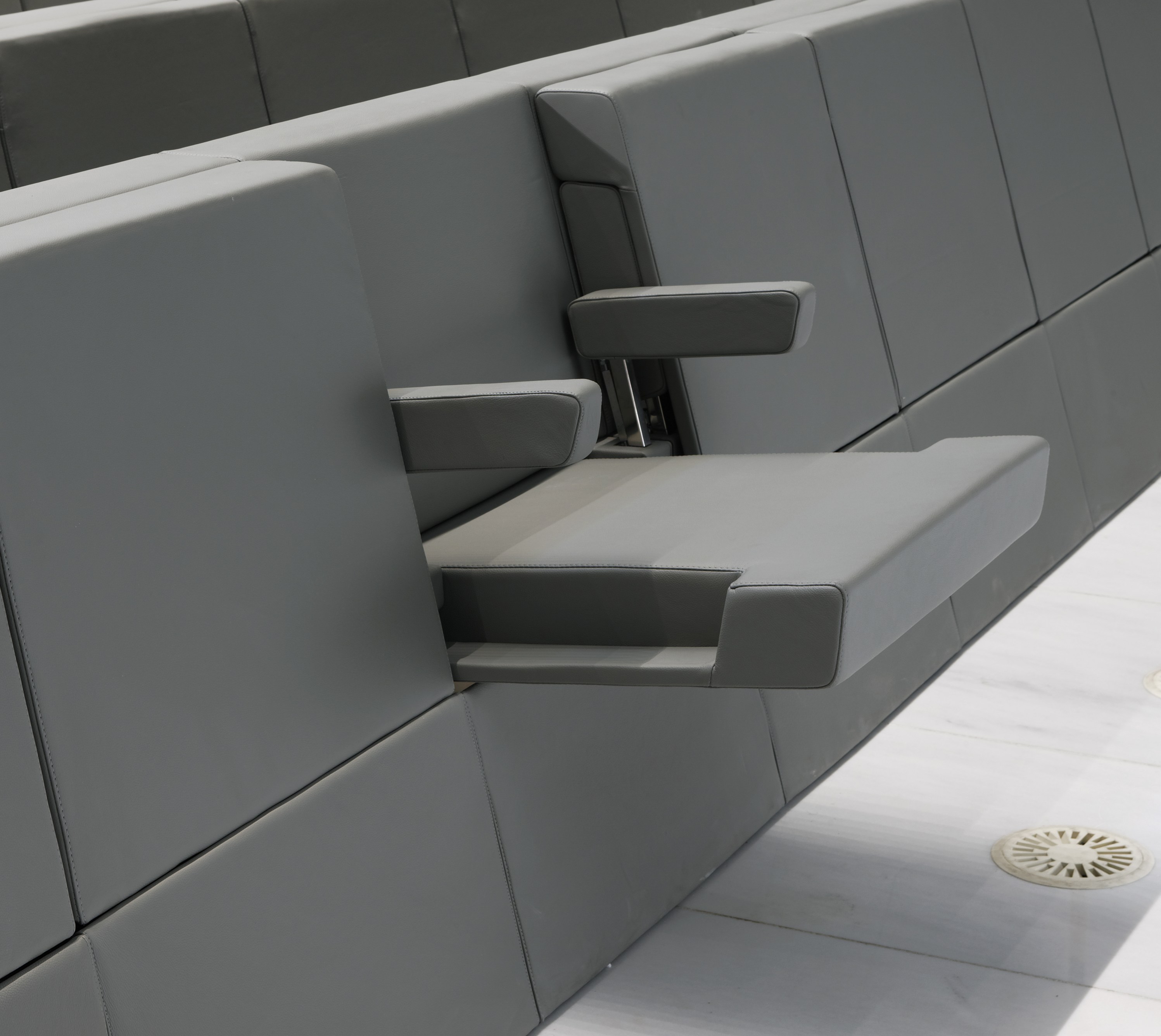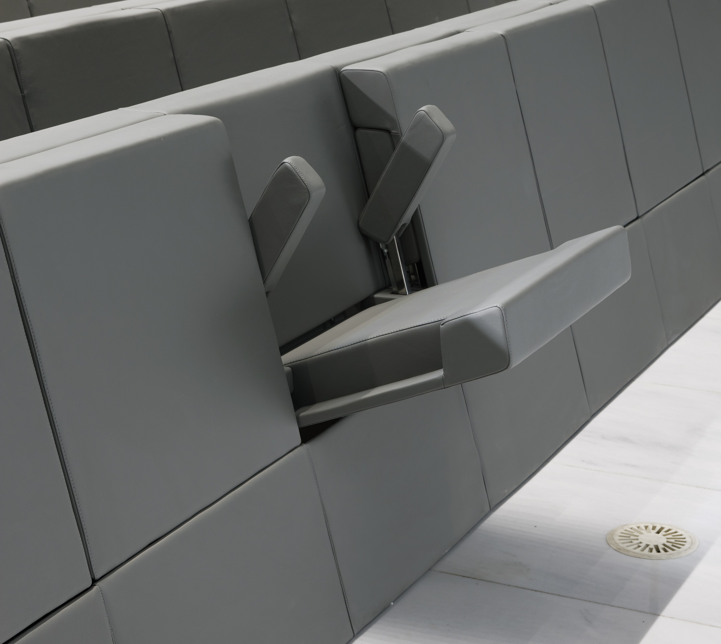 GENYA ARMCHAIR:专为米兰Bocconi大学新校区的Aula Magna设计,非常时尚且极简。它甚至成为这种建筑组成的决定性元素。Genya扶手椅完美地融入了环境,充满活力地肯定了其原创性:其略微倾斜的线条和严格的半圆形排列构成了真实的城市几何形状。当关闭时,座椅看起来像一堵紧凑的墙;插入地板表面的整体结构,其中所有可能的干扰源都设计为隐藏在体积中。金属支撑框架直接连接到地板结构,以消除所有可见的介质;而两个扶手 通过将它们与座椅本身整合在一起的同步运动进行调节。仔细地研究了Genya座椅,它确保了顶级的技术和安全性能以及超凡的舒适度。