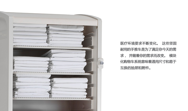 医疗环境要求不断变化。这些坚固耐用的手推车是为了满足你今天的需求,并随着你的需求而改变。模块化购物车系统意味着通用尺寸和易于互换的抽屉和附件。