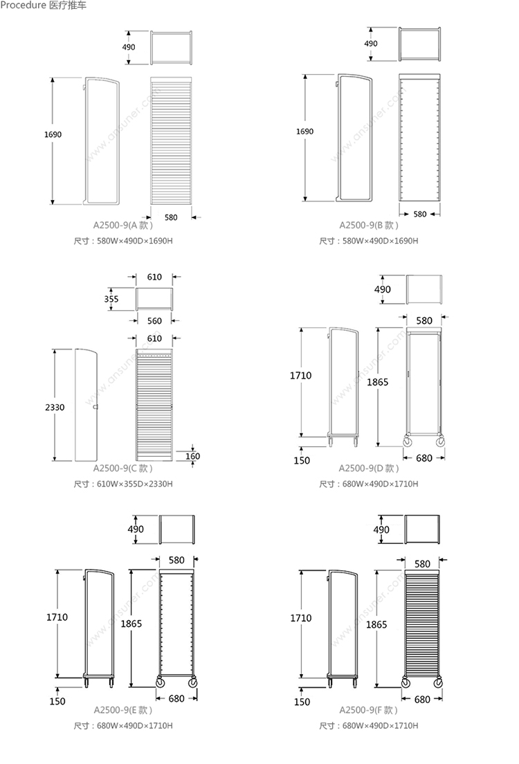 Procedure 医疗推车 系列尺寸/示意图