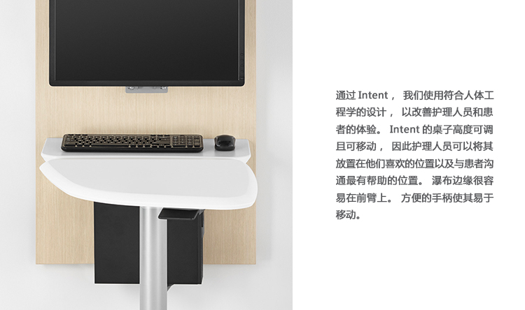 Intent Solution与综合墙系统。它们一起帮助检查室中的护理人员自然地使用各种技术——现在正在使用什么技术,接下来可能使用什么技术——因此它成为与患者交谈和保持谈话焦点的工具。这改善了每个人的经验,并建立信任。