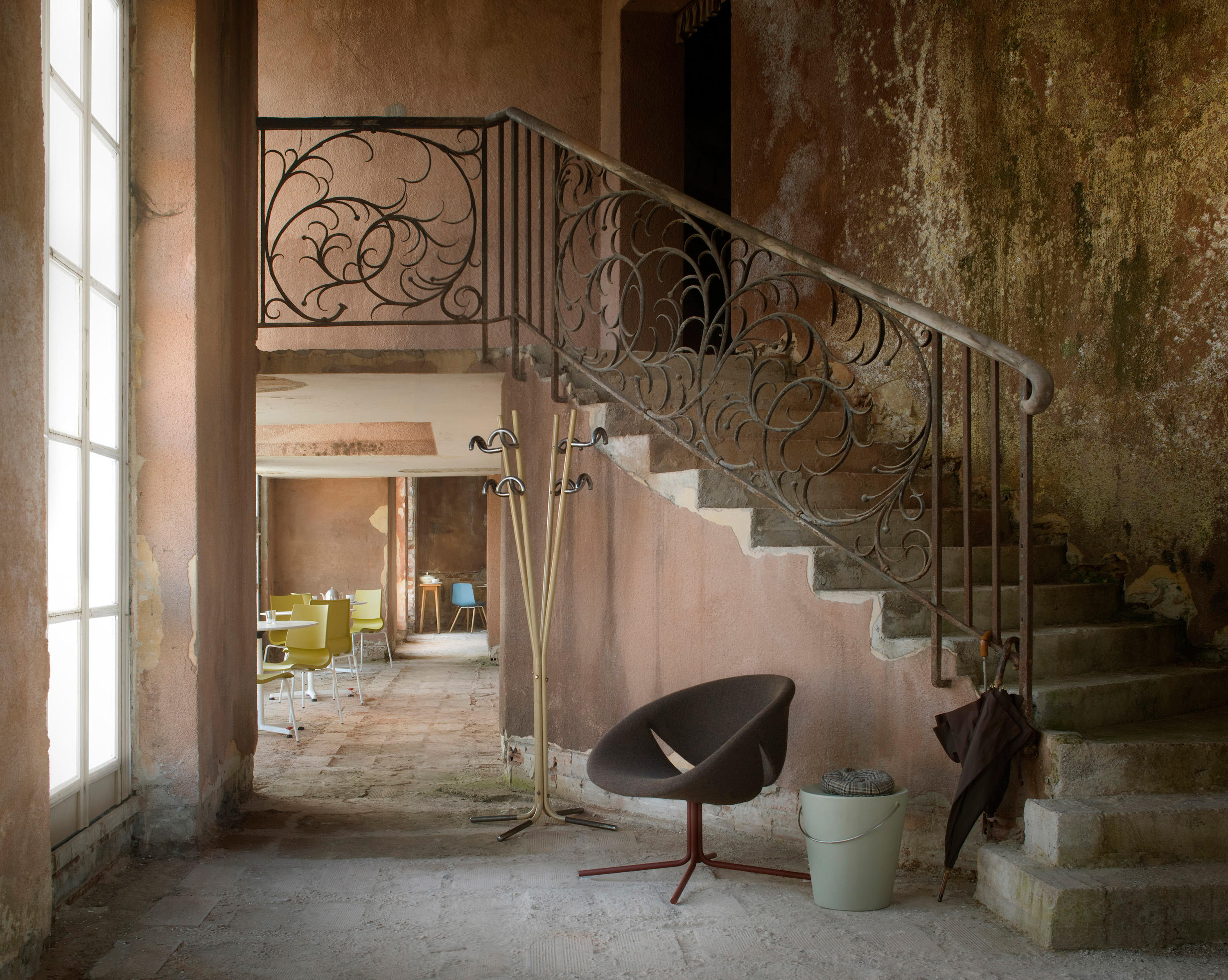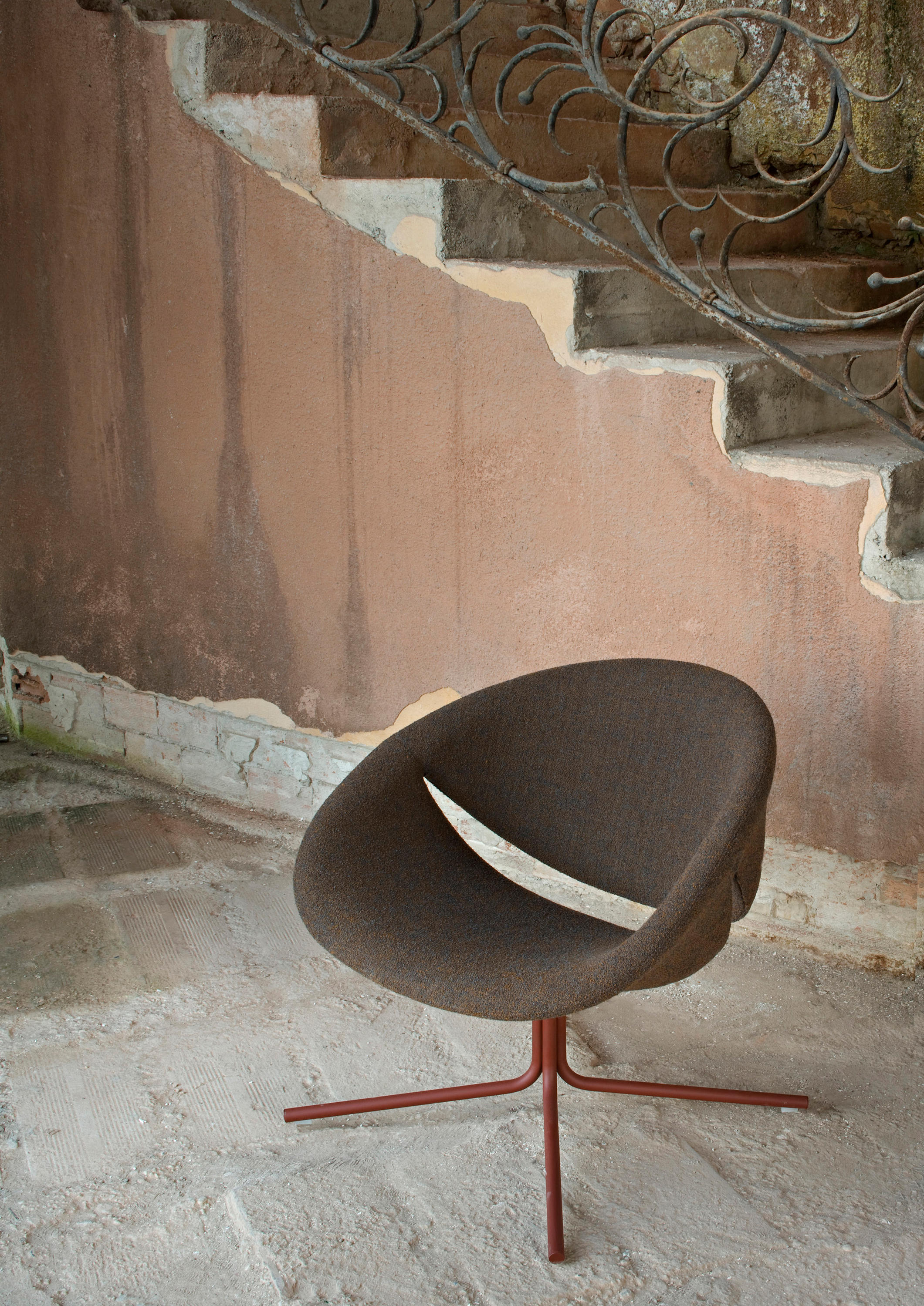 这把椅子的座椅和靠背组合在一起,露出微笑。如此幸福属于有趣的家庭想象,甚至更让人联想到彩色和覆层组合的多种可能性,从而可以个性化描述每种类型的环境。