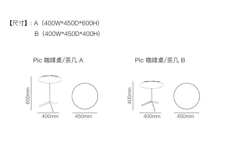 Pic 咖啡桌/茶几 系列尺寸/示意图