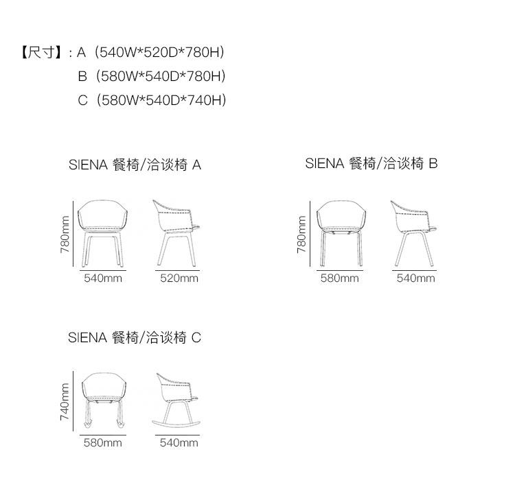 SIENA 餐椅/洽谈椅 系列尺寸/示意图