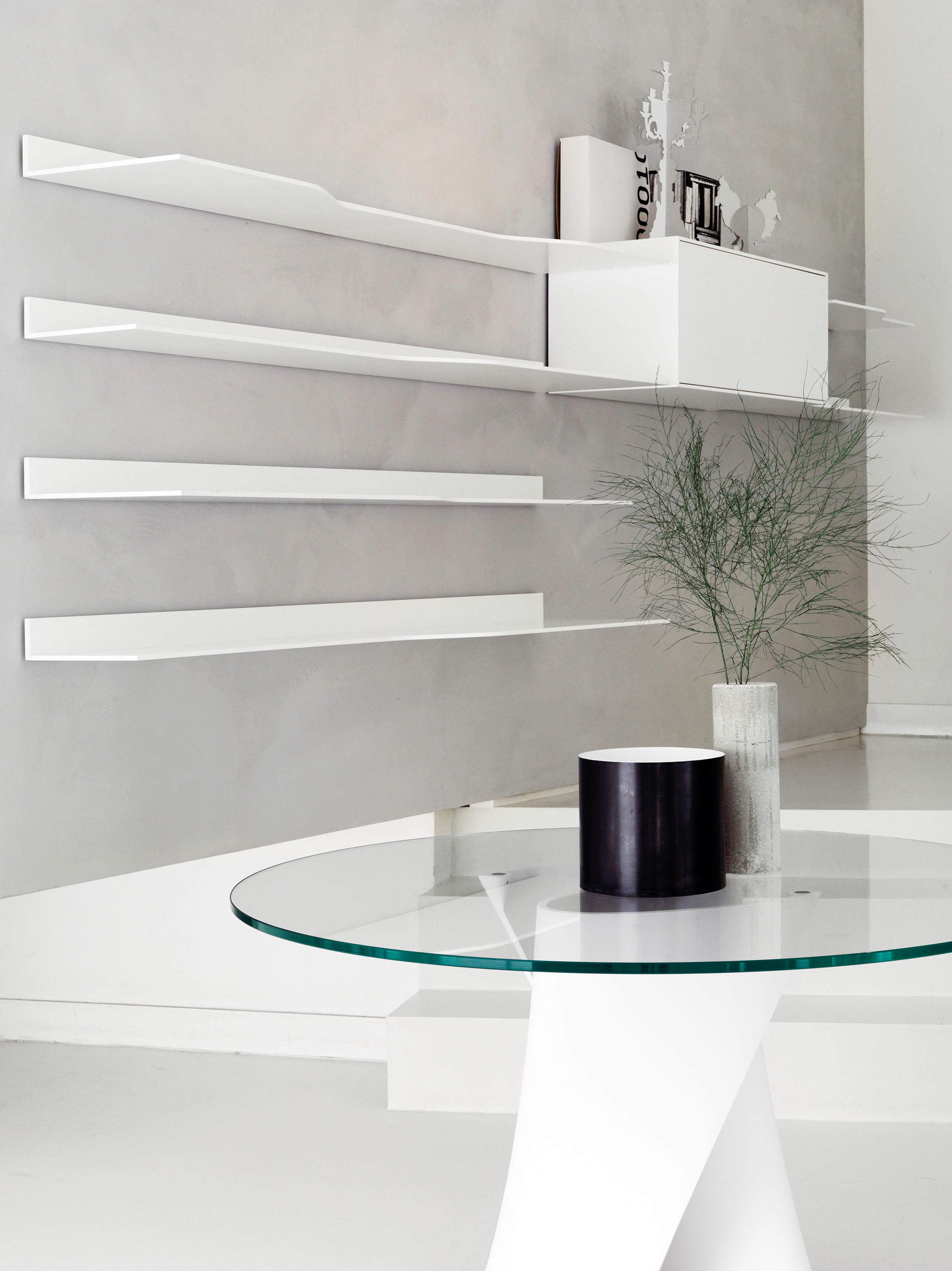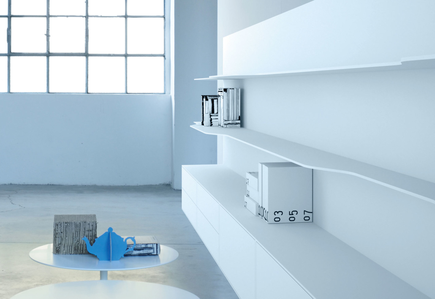 波浪壁系统,它允许开发不同的组合物,其是更受限制和稀有版,因此与少数元素使得系统更横向的房子内的非结构化版本。 视觉和功能特征保持不变,保持在设计和动态性质。原产品 搁架单元 货架由白色丙烯酸类固体表面的,厚9毫米。 一些搁板设有通过一个曲折的和精巧的设计连接深度(35/25 anD25 / 15厘米)的改变。 尺寸和类型: •L90和L180 cm矩形搁架单元,深15、25或35 cm •L90 cm前置式(左和右)搁架单元,深度可变,15/25 anD35 / 25 cm。 •L180厘米亲LED(左和右)搁置单位可变深度,35/25厘米。 •L180厘米亲率领搁架单元具有可变深度,25/35/25厘米。 他们也都在ELECTRI版版本:2个搁架单元(11.8厘米高),配备有用于电缆通道和隐藏后方的空腔。 在搁板的上部部分中,您ND对于由所述搁架的相同的材料制成的电缆管理的开口,以使向每一个可能的器具电缆出口尺寸和类型: •L180厘米亲导致ELECTRI编搁架单元具有可变深度25/35/25厘米 •L180厘米矩形ELECTRI ED搁架单元35厘米深。 可选管道,总是安装在牢固的表面上,以便在电视单元壁挂式安装时隐藏电缆。