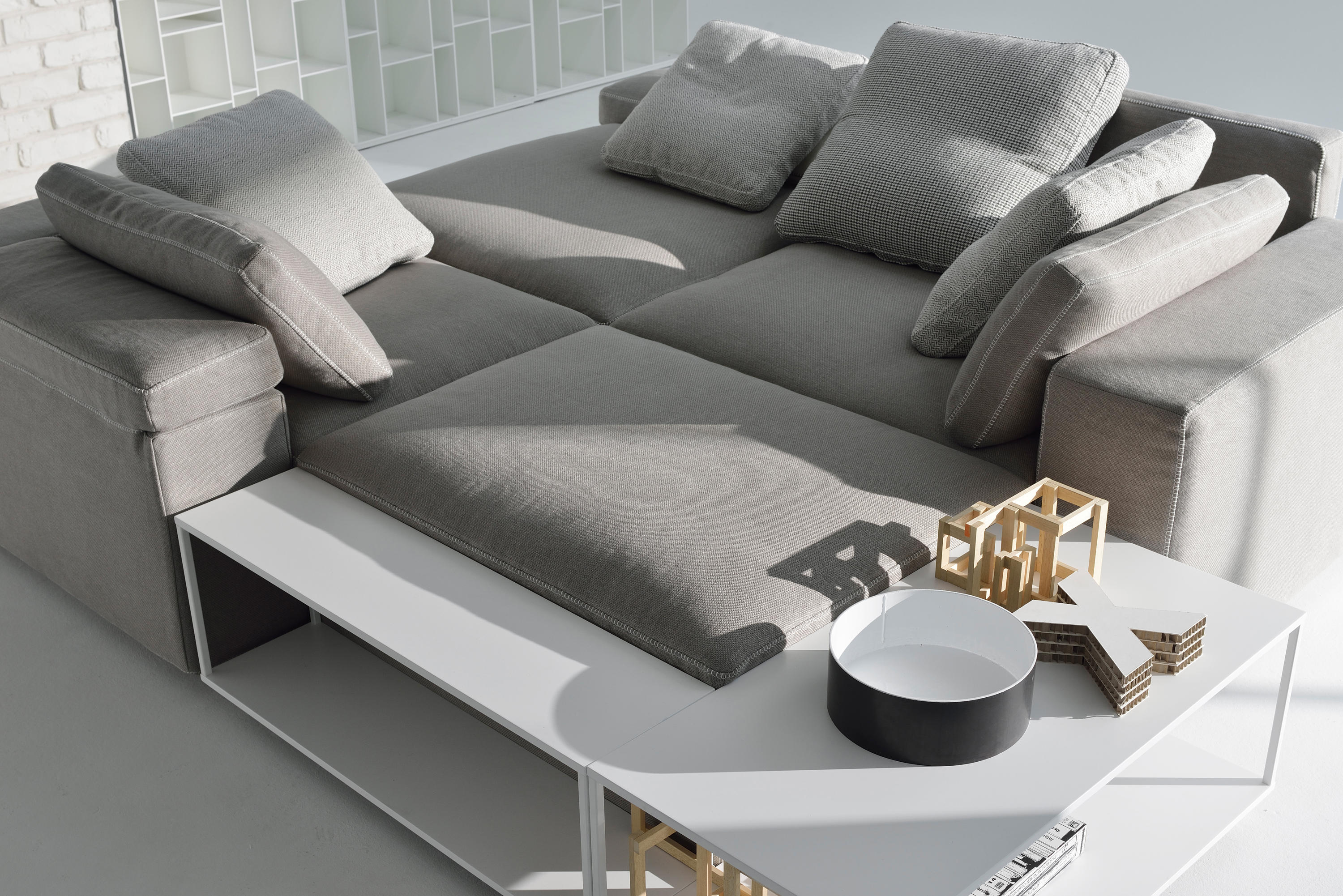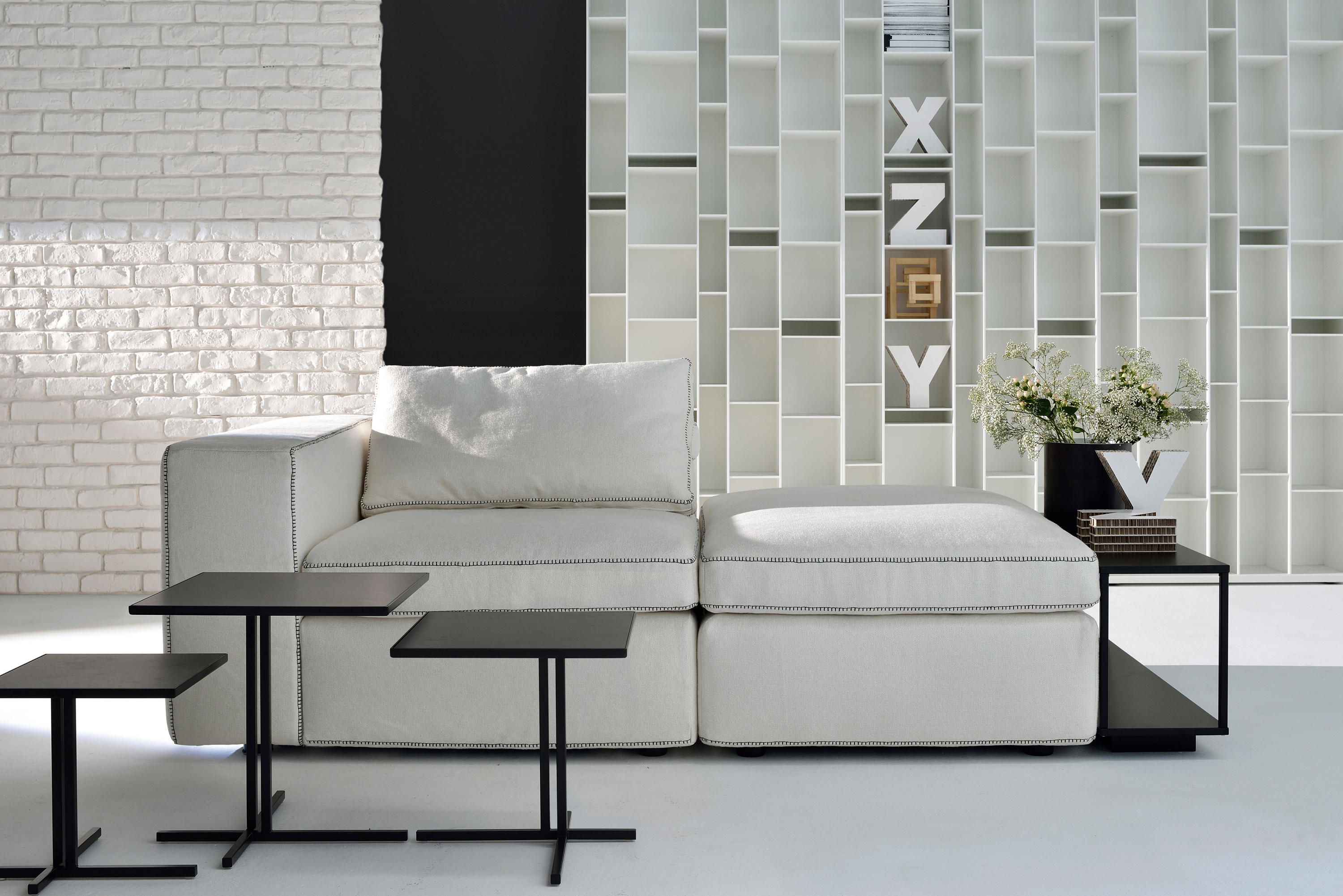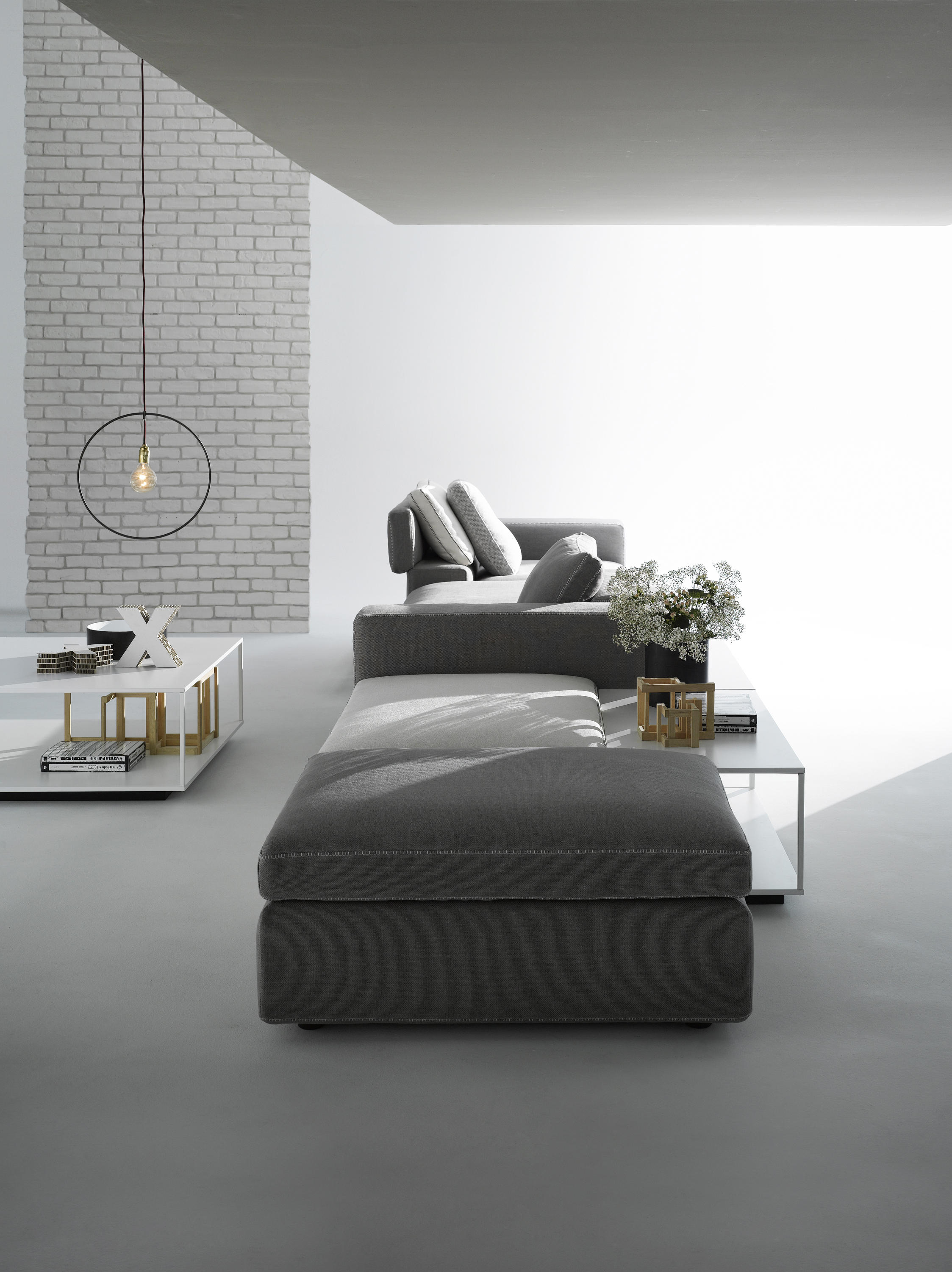 Grafo源自设计师的愿望,即赋予软物体MDF Italia系列标志性产品的“识别标记”。纯洁,直接的图形质量(这是公司理念的一部分)一直是该项目的灵感之源。Grafo是一个模块化系统,三个沙发,八个软垫元件和三个互补的茶几可根据客户的自由,创意诠释开发无穷的解决方案。边缘上的特殊对比针脚有白色,中灰色和无烟煤色可供选择。模块中内置的可折叠靠背可确保高度调节。该系统由各种垫子组成。