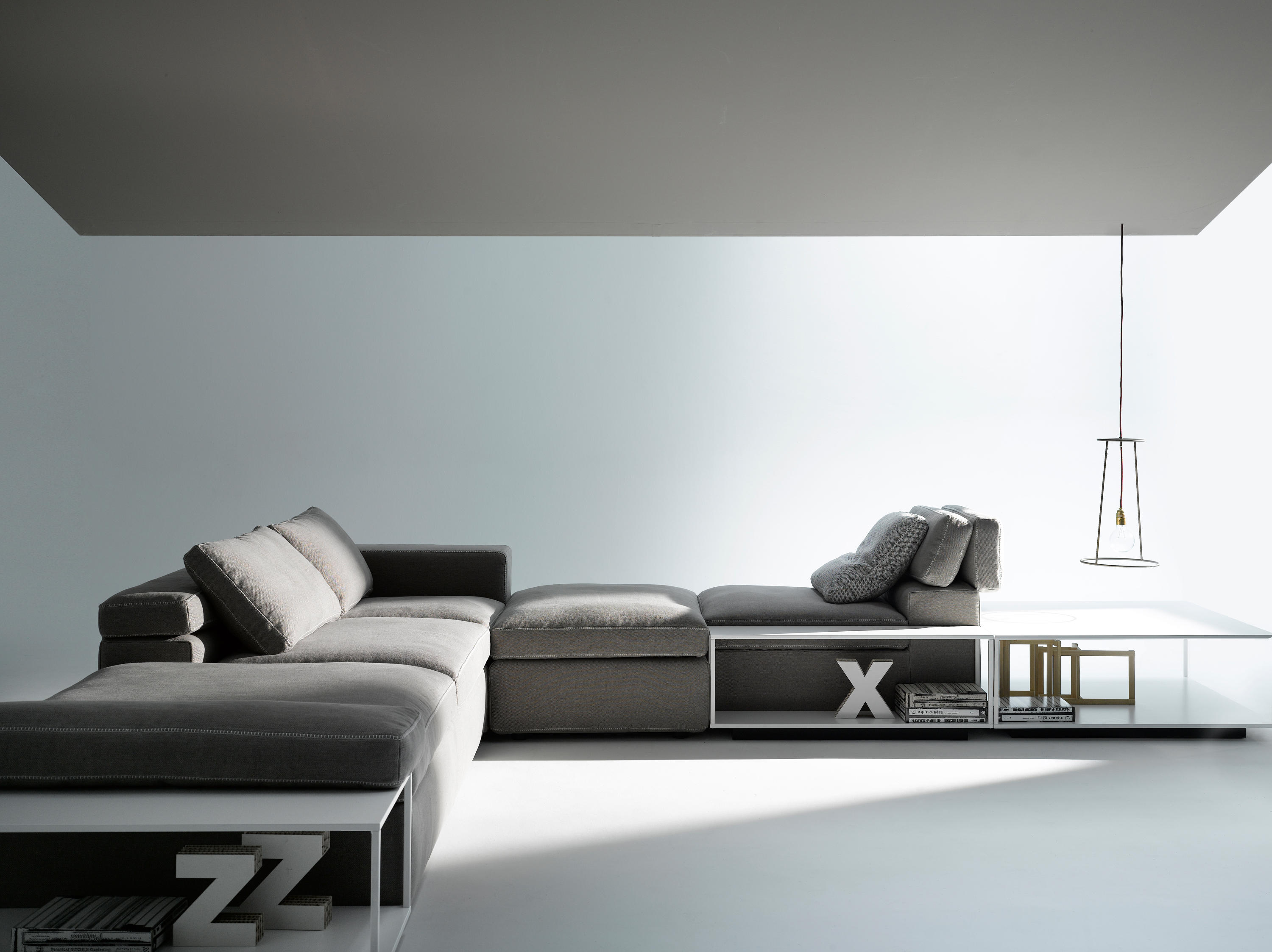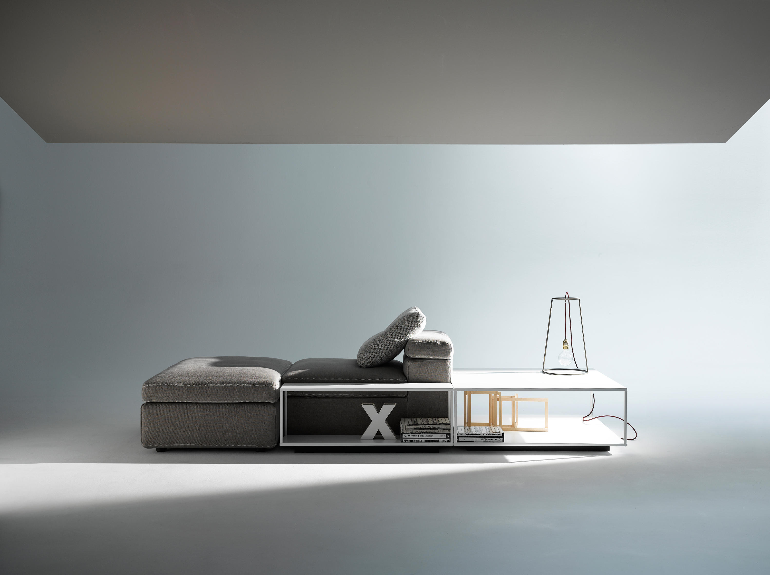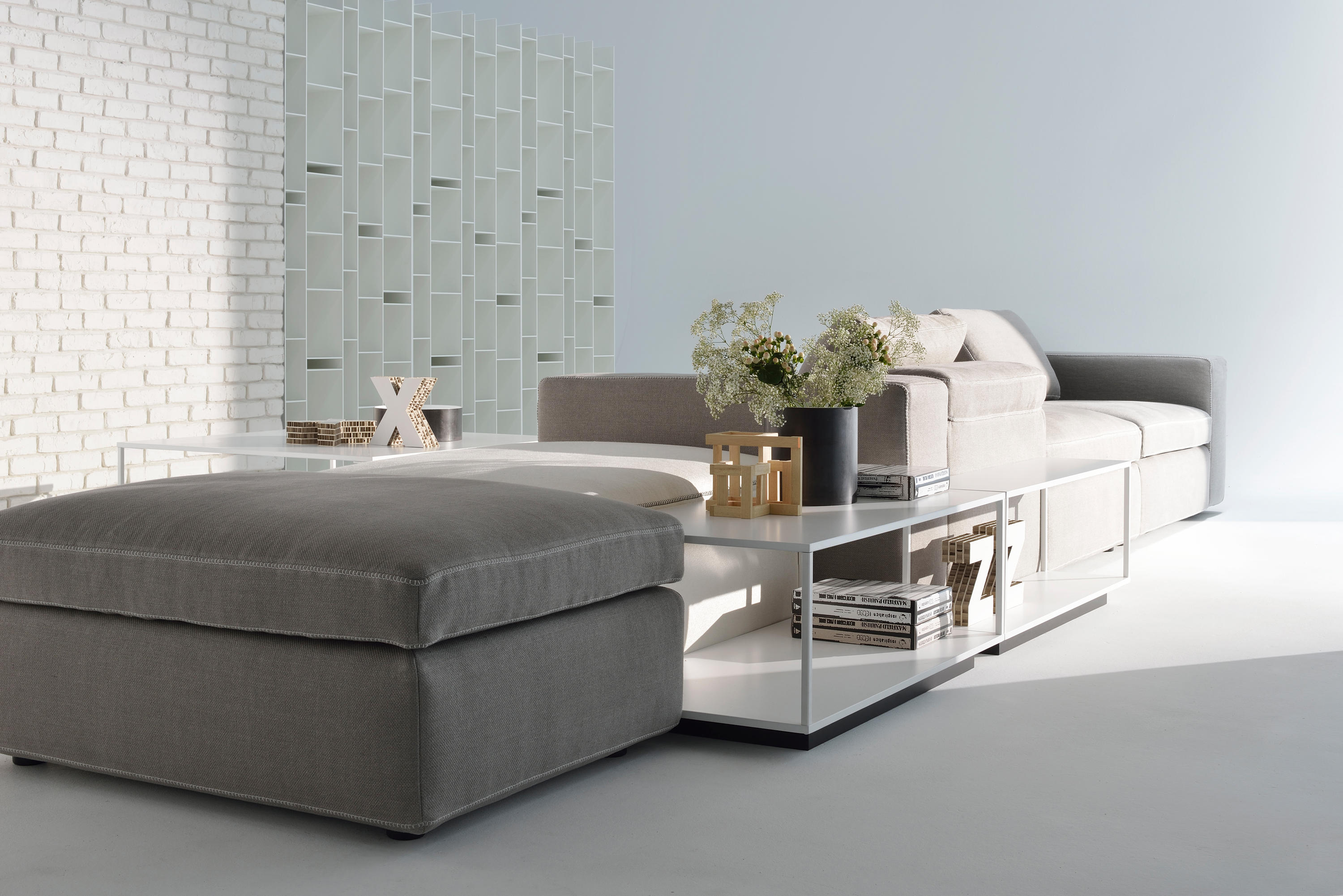 Grafo源自设计师的愿望,即赋予软物体MDF Italia系列标志性产品的“识别标记”。纯洁,直接的图形质量(这是公司理念的一部分)一直是该项目的灵感之源。Grafo是一个模块化系统,三个沙发,八个软垫元件和三个互补的茶几可根据客户的自由,创意诠释开发无穷的解决方案。边缘上的特殊对比针脚有白色,中灰色和无烟煤色可供选择。模块中内置的可折叠靠背可确保高度调节。该系统由各种垫子组成。