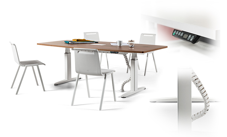 内置聚苯乙烯材质的可伸缩电缆,拥有升降功能的控制键盘,可根据工作需求调节桌面高度
