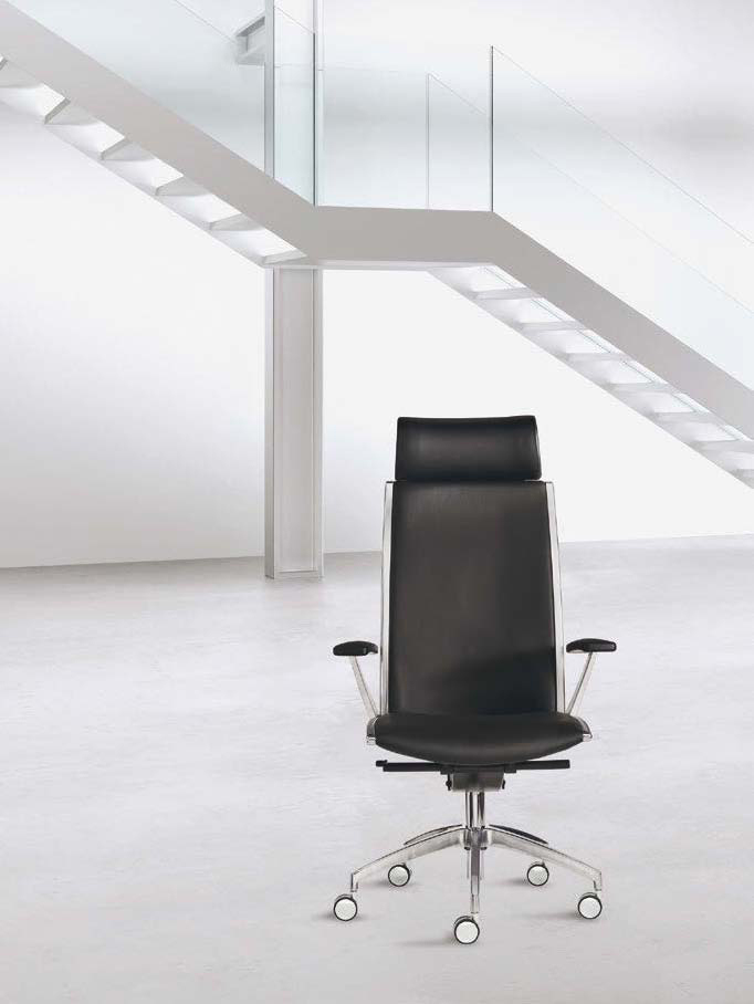 Fifty(五十)拥有现代感的线条和珍贵的材料。 在其结构中,我们已将抛光铝加在侧面,并且覆盖皮革或网眼织物。在内部,它有“Synchromet”调整机制,自动适应用户的体重和大小。