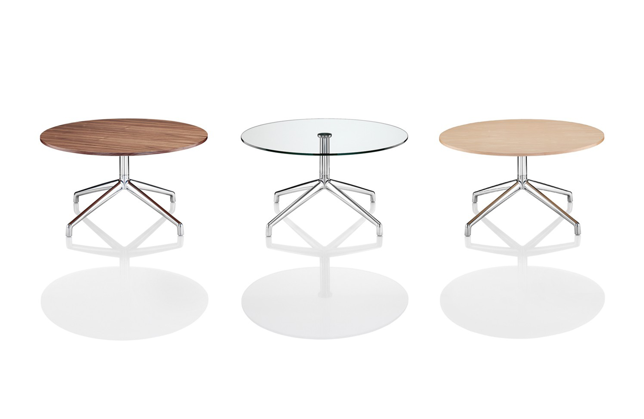 Axis(轴心)桌子非常适合非正式的接待,中庭,会议或休息区。从Boss Design的几个系列中可以看到,Axis是一个细长的抛光铝四星脚基,可以选择夹层或贴面圆形桌面。可作为咖啡、会议或餐桌上的餐桌等适合各种用途。
