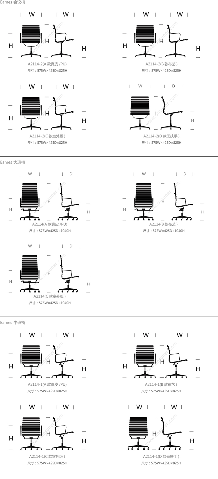 Eames 会议椅 系列尺寸/示意图