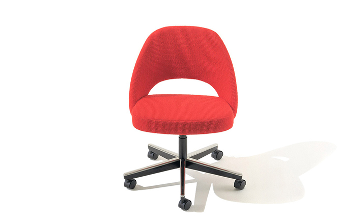 In his groundbreaking collection of 1957,Eero Saarinen transformed executive seating into a fluid,sculptural form.Recognizing the importance of user comfort,Saarinen became the first to construct a chair shell from fiberglass,a pliable material that flexes the In response to body weight. The chair is available with and without very different,and the features metal or wood legs,or a swivel base.The armless chair with a plastic back, ideal for cafe applicatons,is a recent reintroduction.
