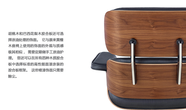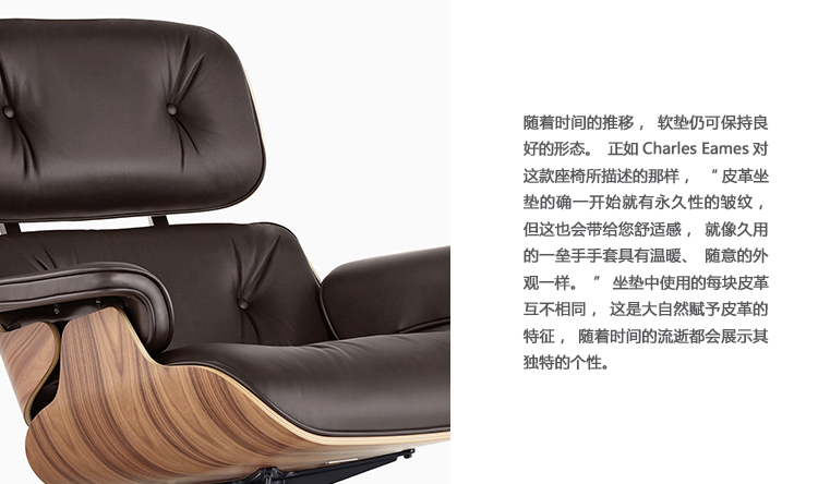 1956年知名由夫妻档设计师Charles & Ray Eames发表的lounge chair&Ottoman历经50多年的岁月,仍被视为现代家具史上最重要的经典设计家具之一,已经成为美国最重要的现代艺术博物馆MOMA的永久收藏品;椅子的压铸铝制部分则是以铝合金镀鉻,让整体视觉呈现轻盈興现代感.