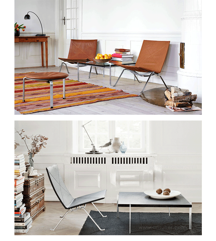 PK22 Easy Chair(安乐椅)是Poul Kjaerholm设计的,和PK20同为PK系列作品,是设计师众多作品中最具代表性的作品之一,PK22椅子外形独特、结构简单、坐感舒适,无疑是现代家具中具有代表性的作品之一,设计师以罕见的设计气质,将功能主义的逻辑理性与北欧的设计感觉天衣无缝地融合在一起,再通过对使用的各种材料和技术构造方面的准确无误的掌握,创造出一种非常纯粹的设计美学。