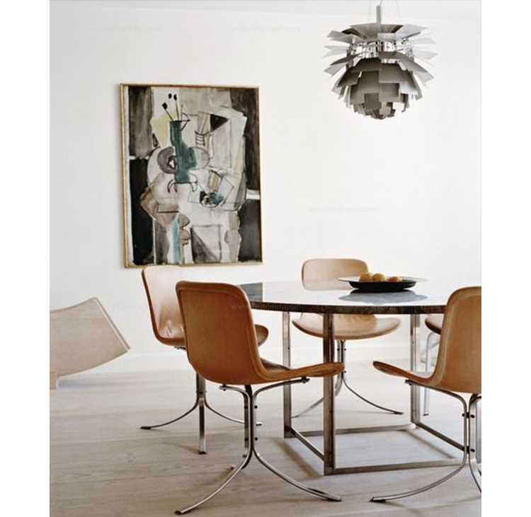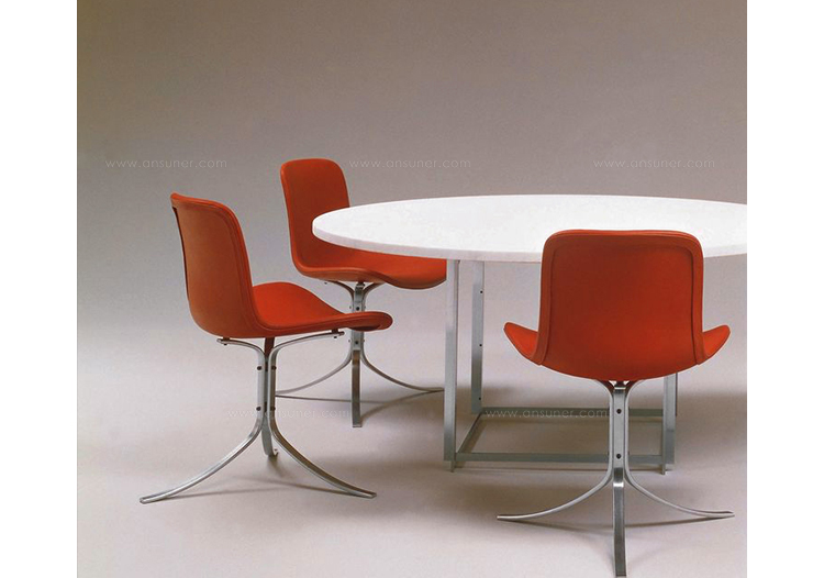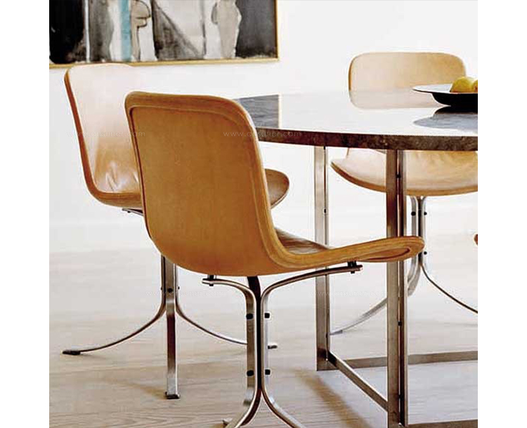 PK9——也称为“郁金香椅”是Fritz Hansen公司的“Poul Kjaerholm系列”之一。 简单而著名,PK9遵循Kjaerholm精致的设计风格。它适用于任何环境,从休息室和私人住宅等领域。PK9是一个不错的选择,它可搭配任何款式的桌子,但最好的搭配是PK54座子。Poul Kjaerholm对各种建筑材料特别感兴趣,尤其是钢铁,他认为是天然材料。在他丹麦工艺美术学院学习的时候,他去了Fritz Hansen工作,大约一年,他设计了一个值得注意的椅子的原型。1955年,Kjærholm开始与制造商Ejvind Kold Christensen合作,这一直持续到1980年去世。1982年,Fritz Hansen接管了生产和销售“Kjærholm系列”:从1951年到1967年的细致的设计。PK9郁金香椅有一个三脚架,拉丝不锈钢基础,皮革坐垫可供您选择。