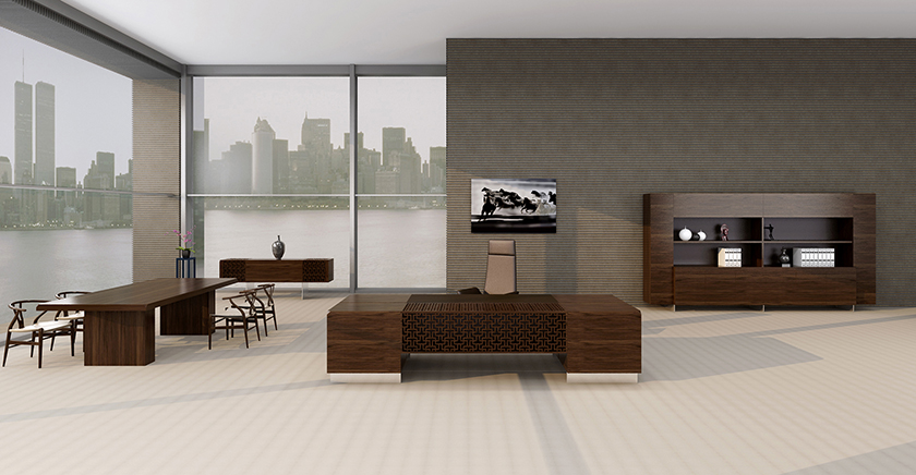 华夏是沉稳中带着些威严,四平八稳,有着传统的中国式的美,外形独特,个性张扬,威严中透着文雅气质。茶几特点突出,与班台相互协调,沉稳中带着灵性。