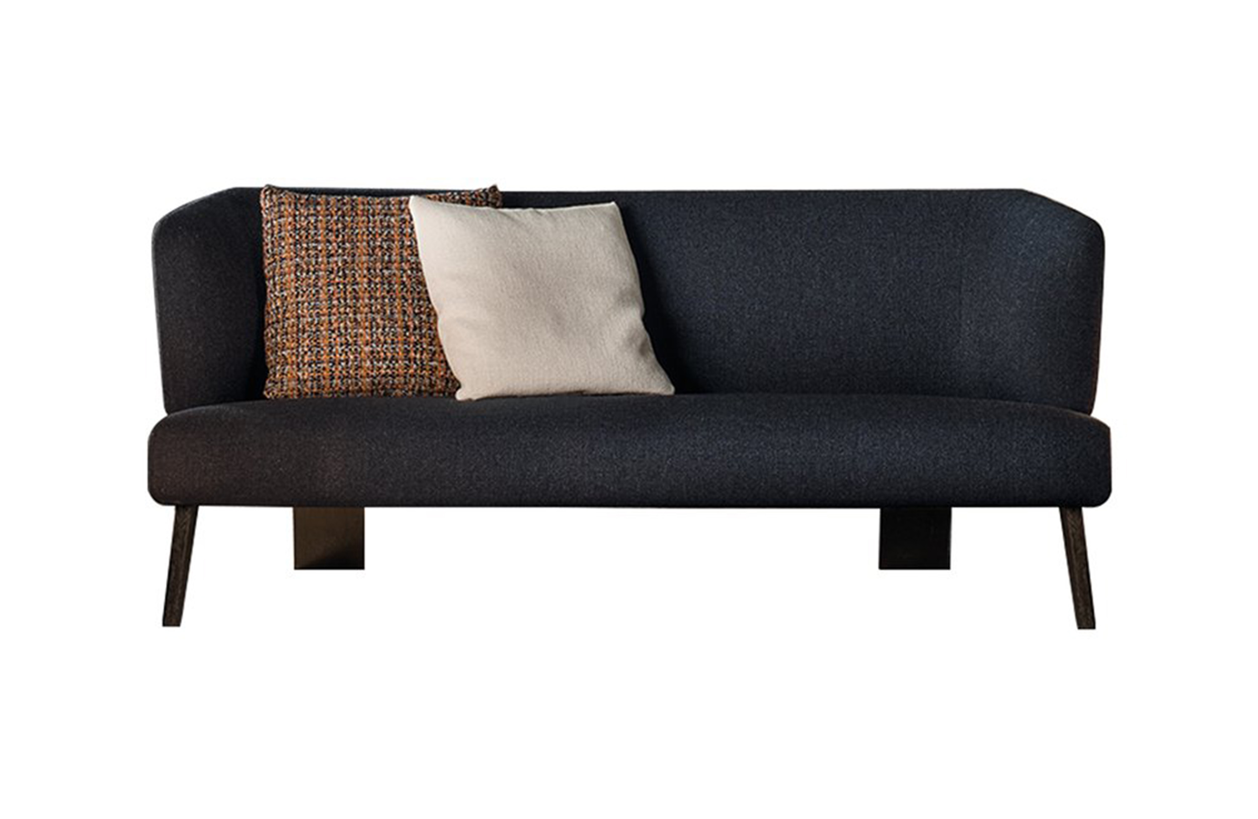 Creed “Lounge”沙发后方的地面支撑采用做工考究的弯曲金属架并搭配浅铜色亮光漆,前方支撑腿则为米灰色的鲍迪豆实木材质。支撑腿的上下方均采用精致的金属部件并搭配浅铜色亮面漆,用与众不同的细节设计来展现非同寻常的高超工艺。