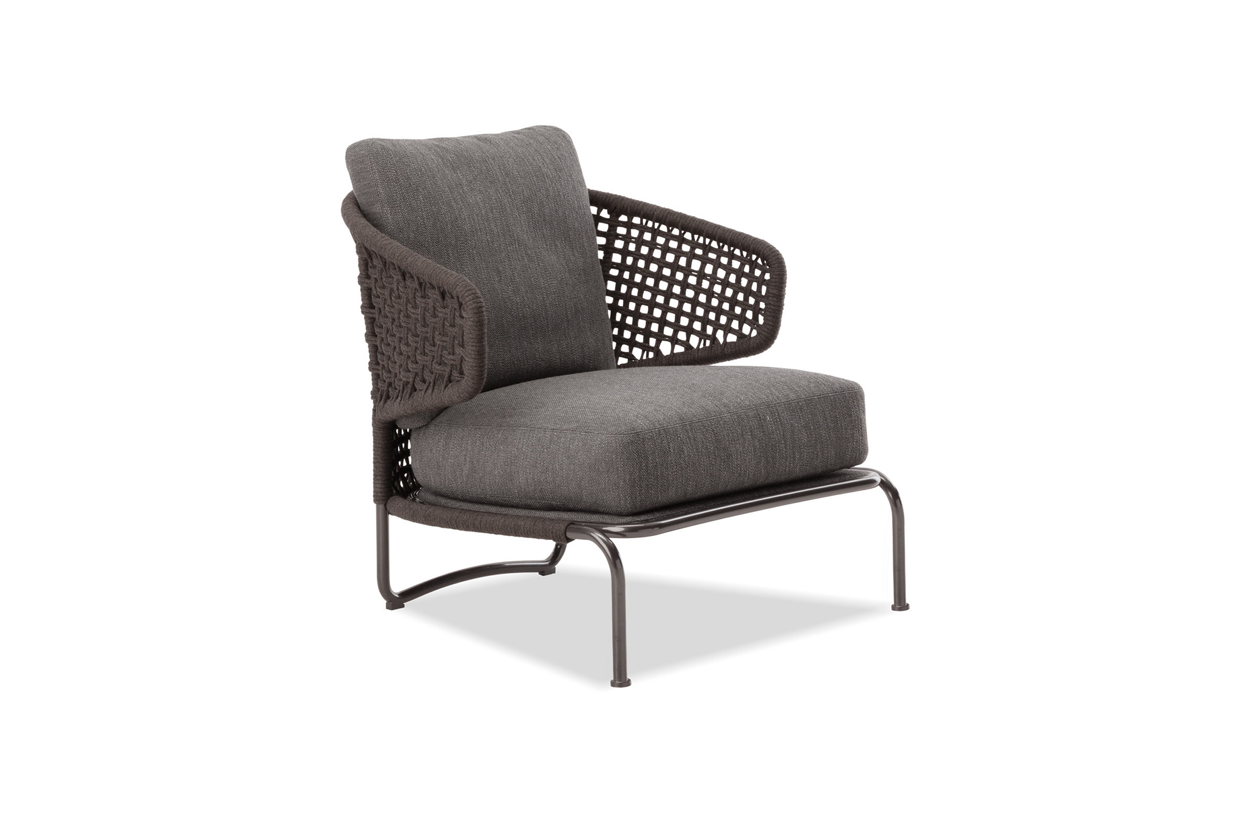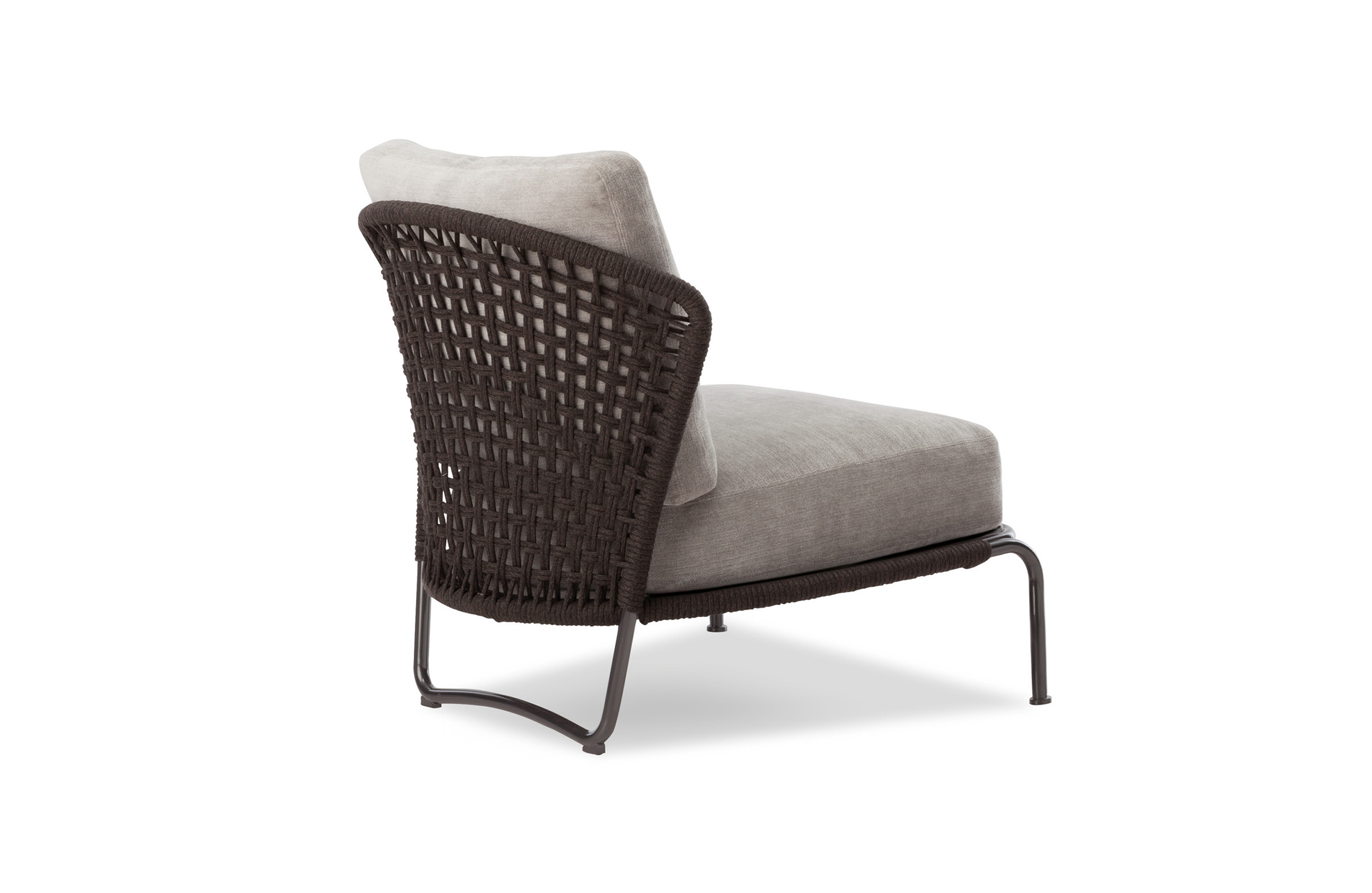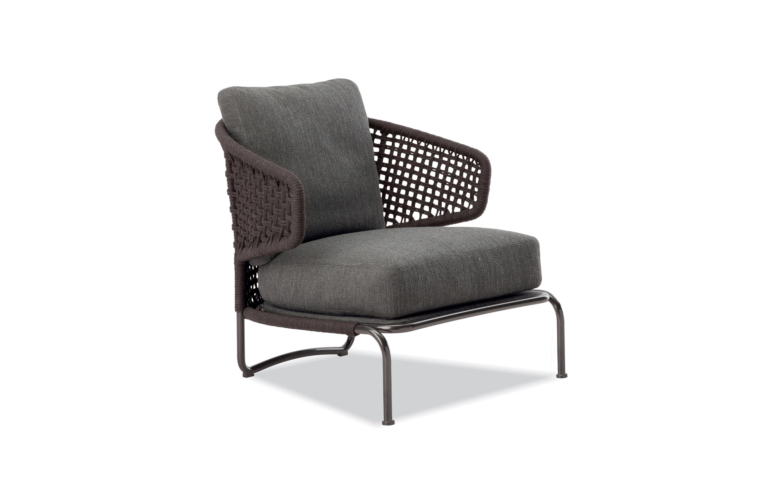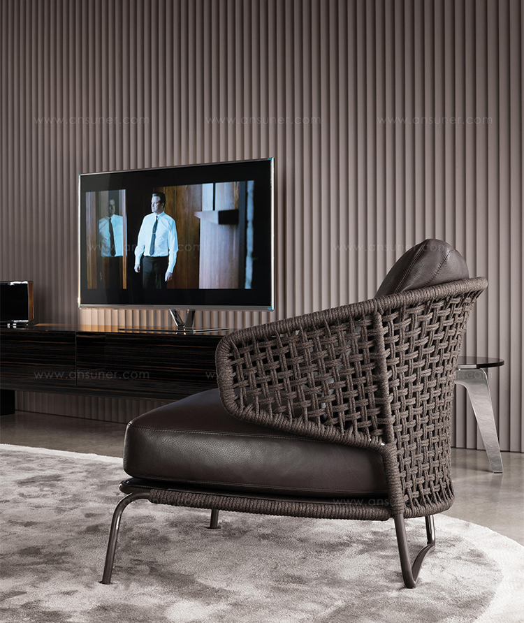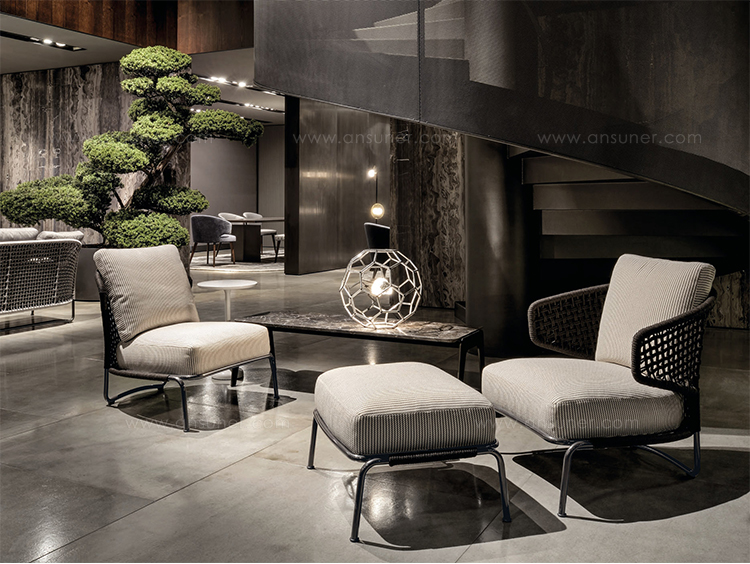 阿斯顿和阿斯顿 “绳”:两者拥有同样的设计内涵和共同的美学语言,和谐的线条和精简的造型可以打造极具创意的室内设计项目,室外和室内环境之间的连续性和统一的风格是其特点所在。阿斯顿 “绳” 室内扶手椅通过不同的材质来重新诠释设计理念。构架为金属材质,表面为Pewter色漆面,靠背采用直径为7毫米的特殊聚丙烯纱线编织而成,有两种颜色可供选择:浅灰色和深棕色。阿斯顿 “绳”室内扶手椅推出了有扶手和无扶手的两个版本,通过清新休闲的造型,可以打造出别具创意的室内和室外互动效果。