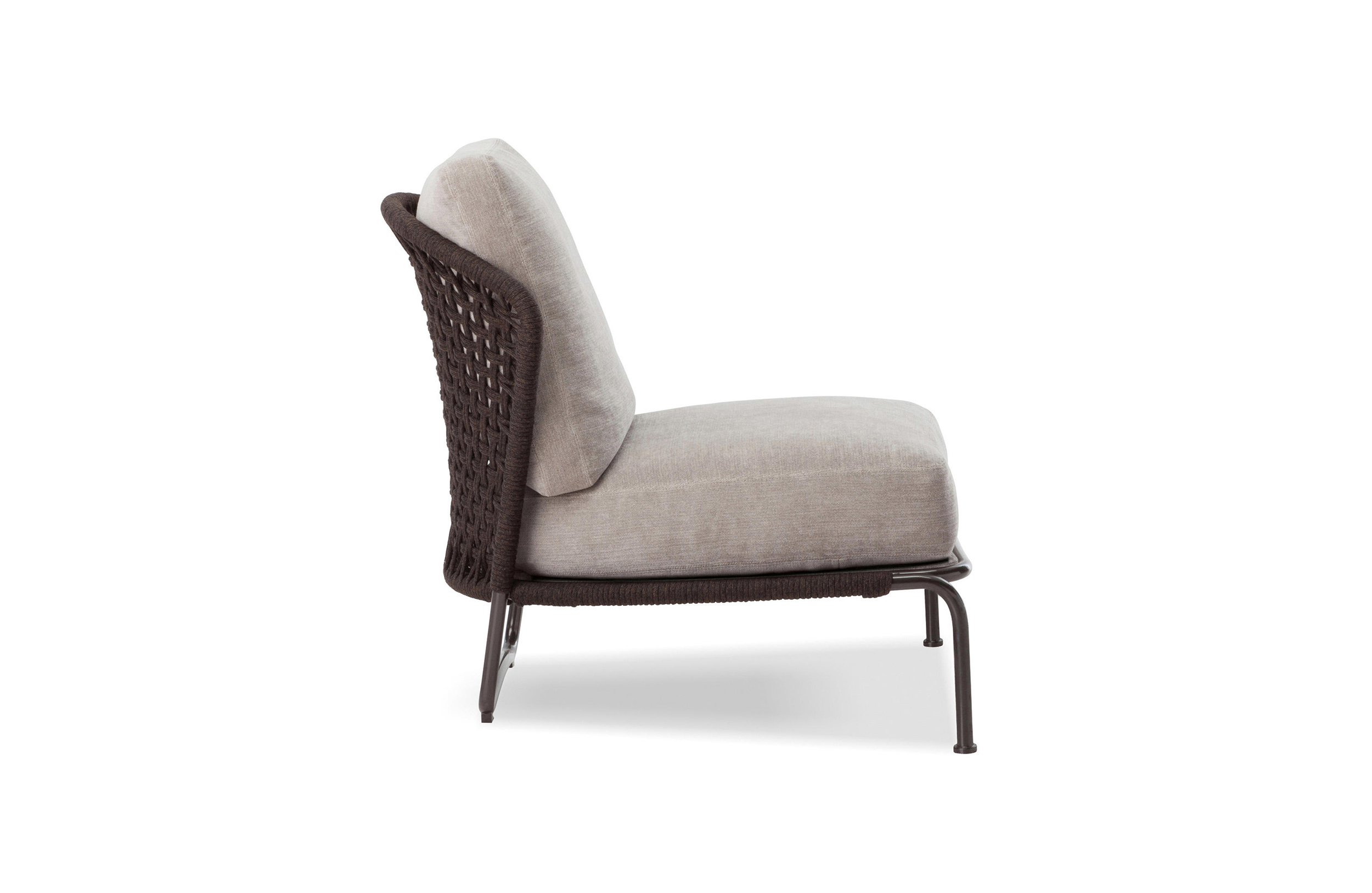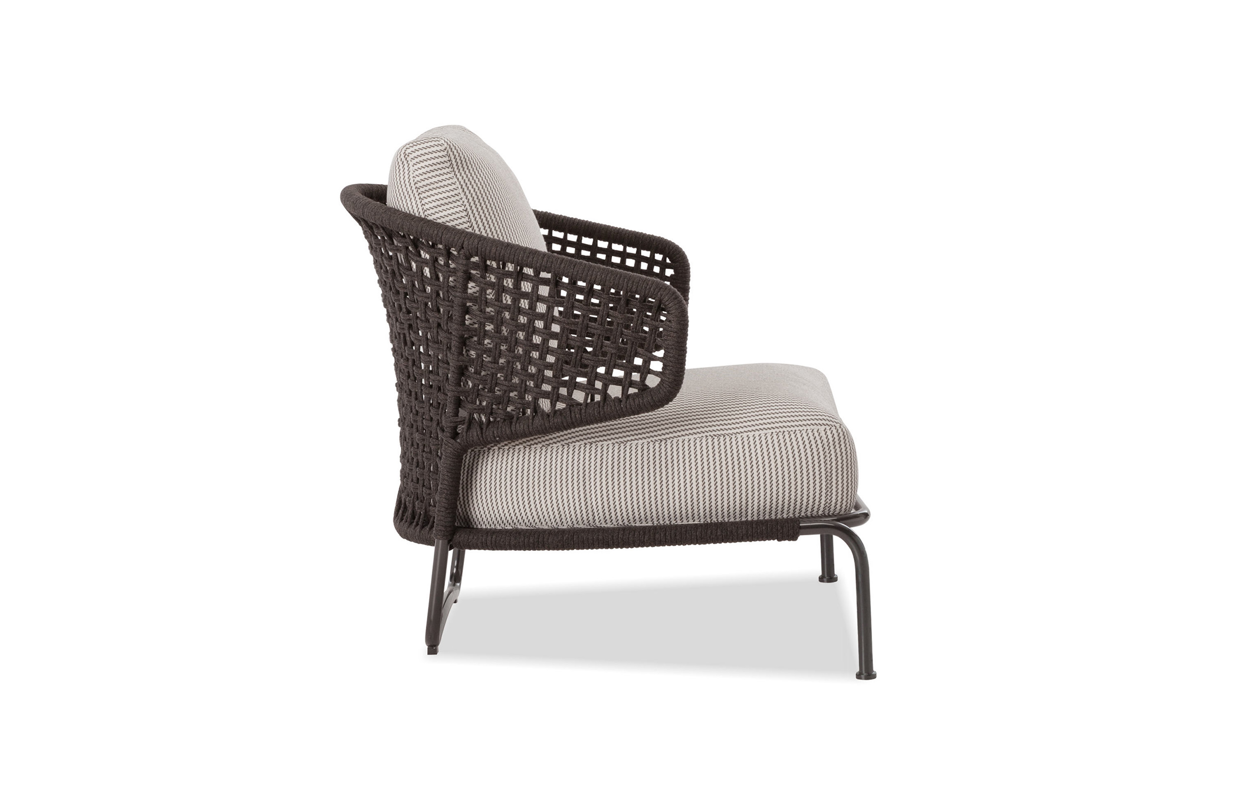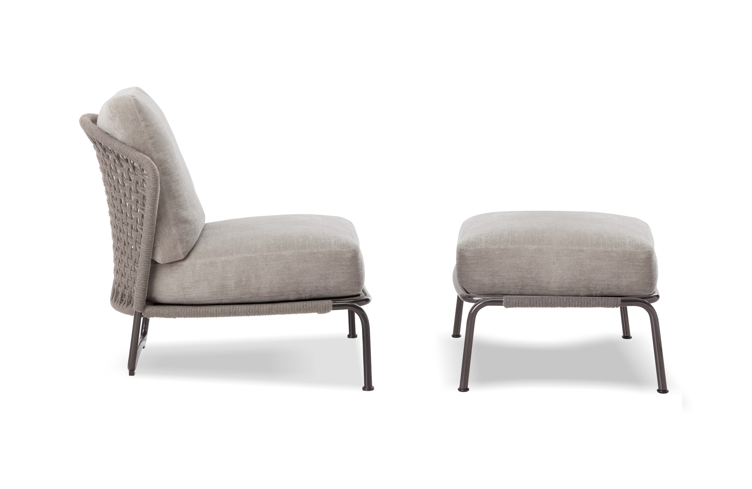 阿斯顿和阿斯顿 “绳”:两者拥有同样的设计内涵和共同的美学语言,和谐的线条和精简的造型可以打造极具创意的室内设计项目,室外和室内环境之间的连续性和统一的风格是其特点所在。阿斯顿 “绳” 室内扶手椅通过不同的材质来重新诠释设计理念。构架为金属材质,表面为Pewter色漆面,靠背采用直径为7毫米的特殊聚丙烯纱线编织而成,有两种颜色可供选择:浅灰色和深棕色。阿斯顿 “绳”室内扶手椅推出了有扶手和无扶手的两个版本,通过清新休闲的造型,可以打造出别具创意的室内和室外互动效果。
