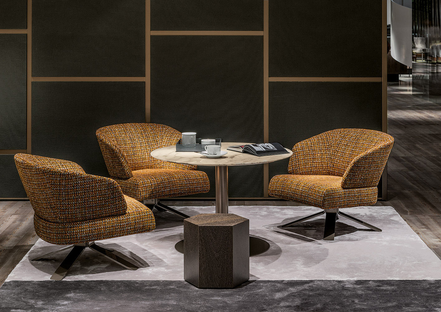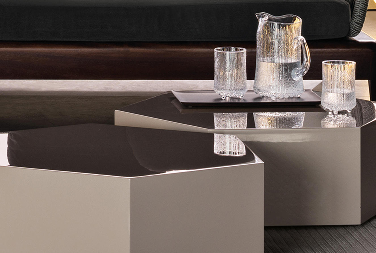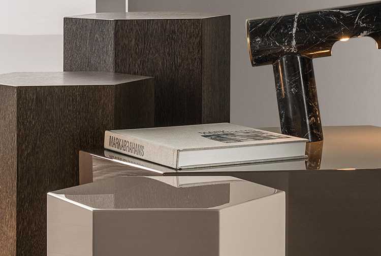 六边形棱柱的多面反光特质让人心动不已,完美呈现四款精致漆面的光泽:Corten色、青墨色、Sand色和灰褐色。在木制版本中,Aeron通过天然名贵的米灰色鲍迪豆木饰贴面来展现出其迷人的材质魅力。Aeron边几有多种尺寸可供选择,不仅造型极具创意,还可以与系列中的其他产品组合搭配出饶有趣味的效果。