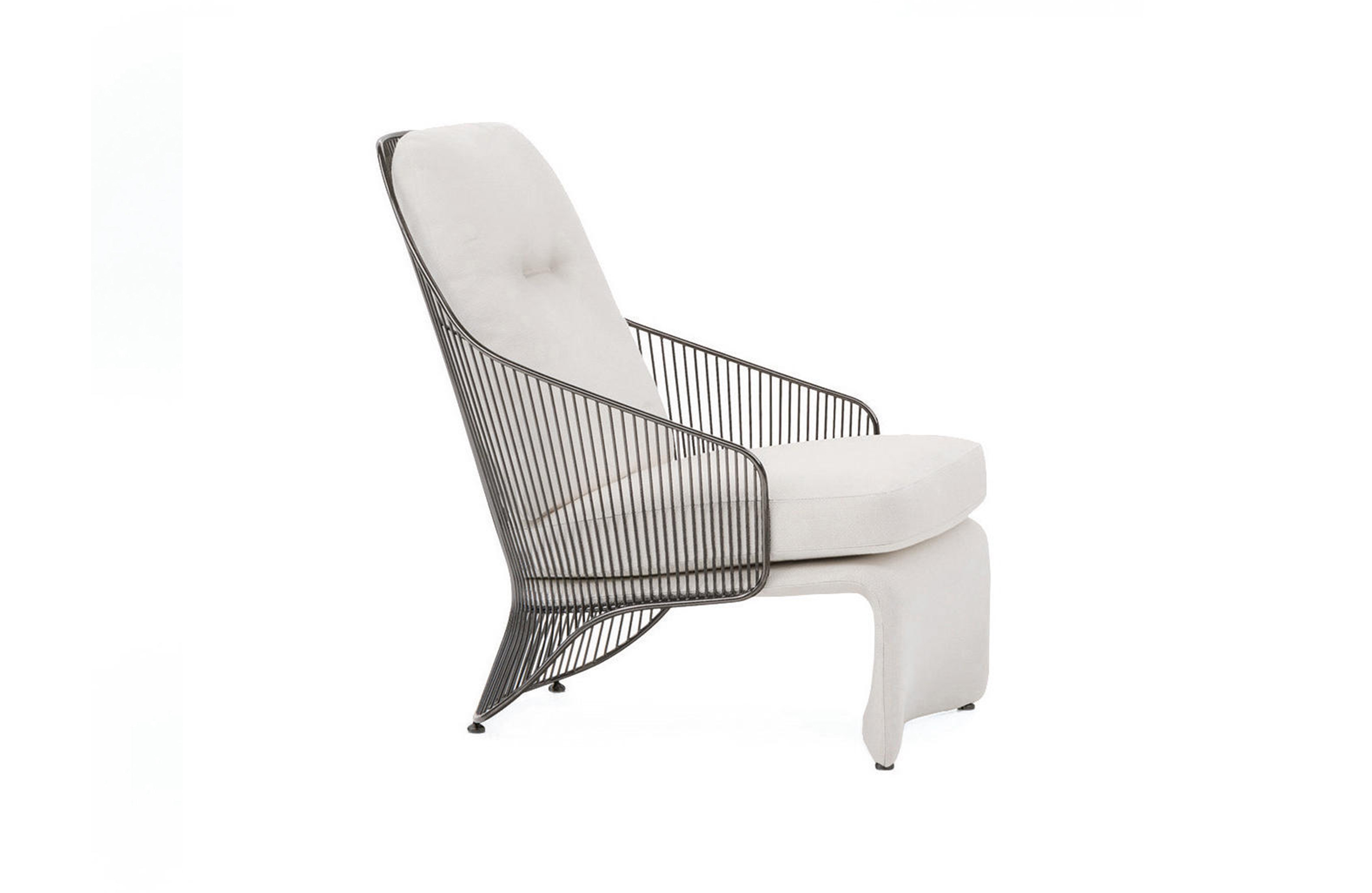 Colette扶手椅有两种高度和两种饰面可供选择:淡金色和黑镍金属色。