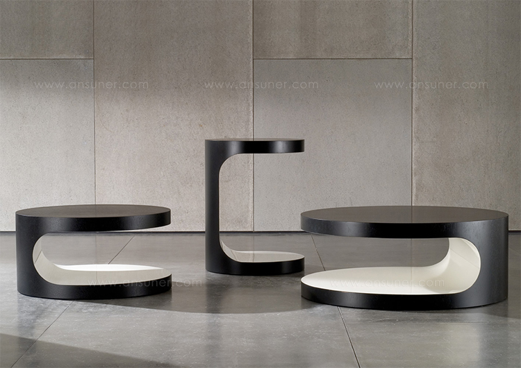 光面与亚光,凹面与凸面,形式与功能,感性与极简。三张边几诉说着设计的美感、格调与造型。这一系列产品会让人一见钟情,与沙发搭配,展现绝佳的功能性,美好而实用。