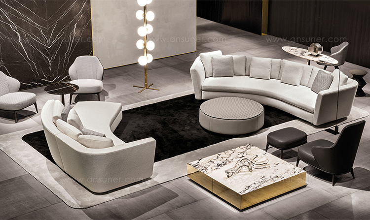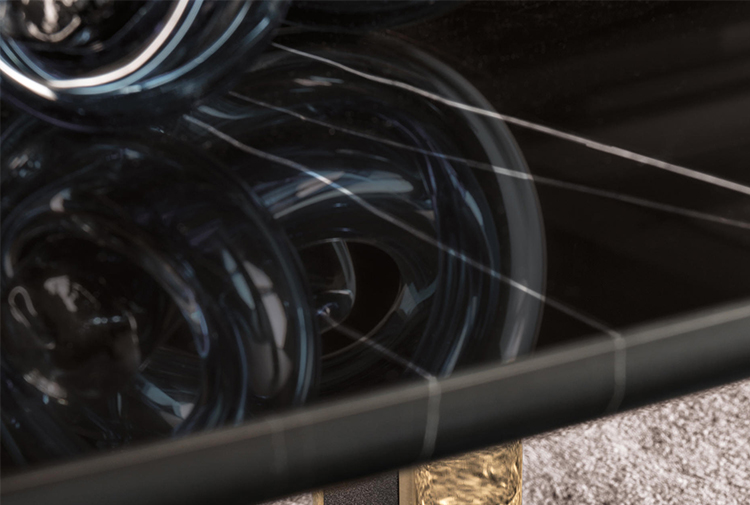 如果说Catlin边柜的设计崇尚简洁,那么材质的选择则旨在打造非凡的视觉和触觉效果。金属基座有着精致的十字形地面支撑腿,其中包括颇有趣味的组合:黑色压花搭配铬色或金色的抛光表面,打造出多种多样的风格。材料的搭配体现出非凡的优雅感,台面可以选择两种珍稀名贵的大理石,Arabescato Purple或Sahara Noir,两者都拥有抛光表面。