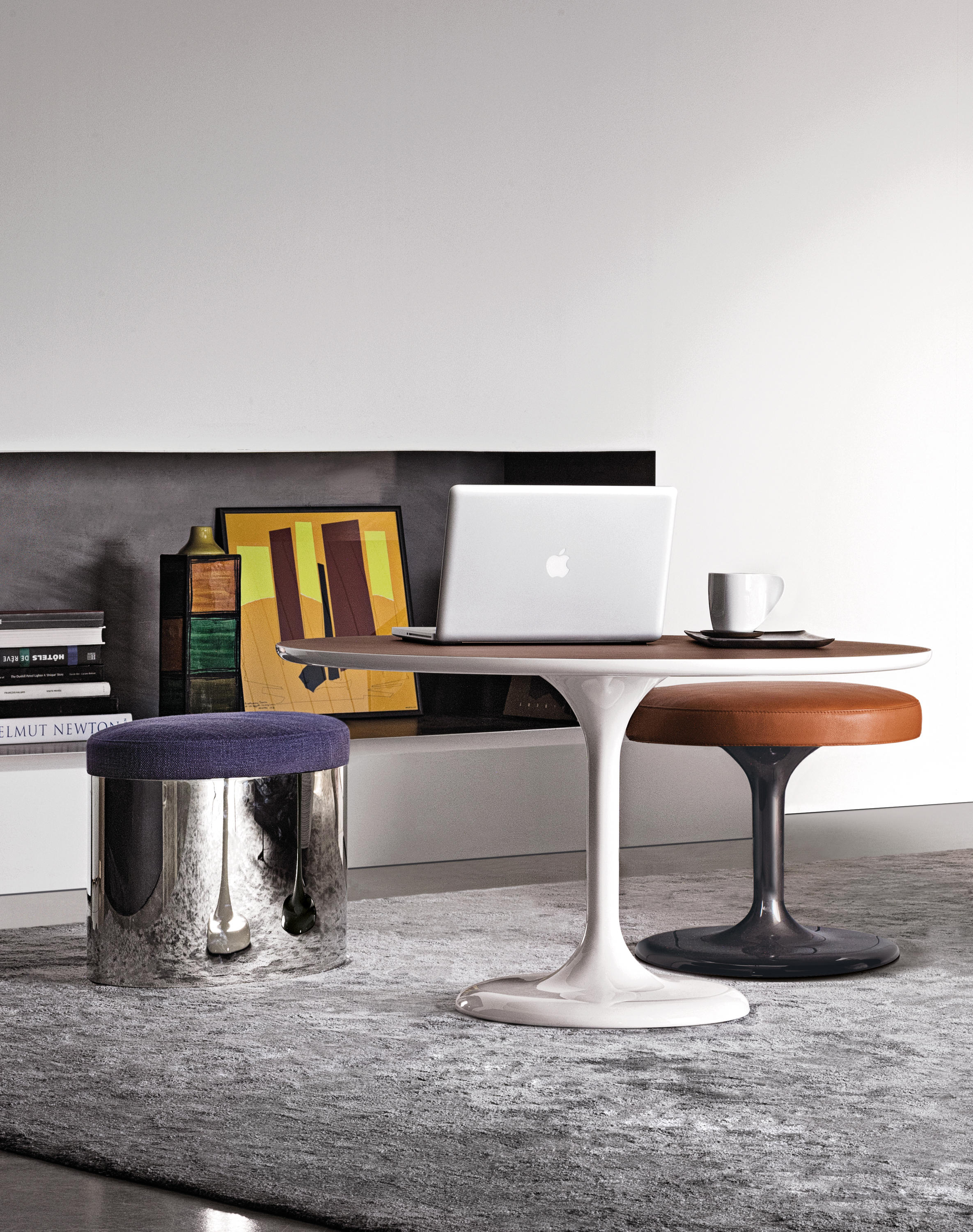 Neto是一组咖啡桌系列,有不同的高度可供选择,此外还有三种直径的台面以及三种不同的材料-颜色组合。如果基座和台面使用相同的颜色亮光漆(白色或Pewter色),以此来展现造型的纯粹感;另外,无论是基座为Pewter色,台面为Marron Damasco大理石的版本;还是基座为白色或Pewter色,台面为亚光漆面的花梨木的版本,两者都强调木材和石材这两种材质的珍贵性。“全白”版本则展现出Neto咖啡桌的可塑性。在亚光漆面的花梨木版本中,台面下方使用与聚氨酯基座相同的颜色,采用Minotti Studio的独家设计。技术与设计内涵在咖啡桌上展露无遗,体现出十足的个性,使其能够搭配系列中的任何沙发座椅。这款极具功能性的休闲凳属于Neto家族,基座材质为聚氨酯,漆面颜色为Pewter色,上方部件则添加填充物,包覆Minotti独家系列中的布料和皮革。Neto休闲凳是搭配LANE边几的理想之选,实际上,它也是一款万能单品,在任何环境中都能自如地展现魅力,与系列中的任何产品搭配都毫无违和感。