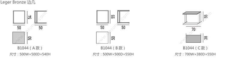Leger Bronze 边几 系列尺寸/示意图