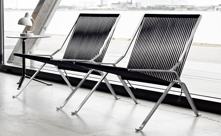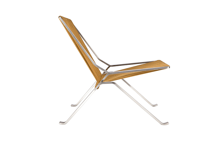 This PK25 chair is one of the PK series of chairs by Poul Kjaerholm. The designer considered steel to be a natural material with the same artistic finesse as wood. With the design of this chair, he exploited the natural strength and flexibility of steel and a corded seat. Our products are reproduced to the style of the original design. Our products are reproduced to the style of the original design.