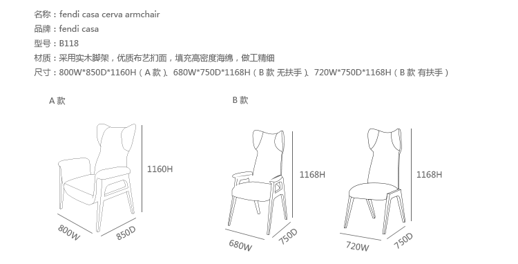 带扶手布艺 800 w|850 d|1160 h