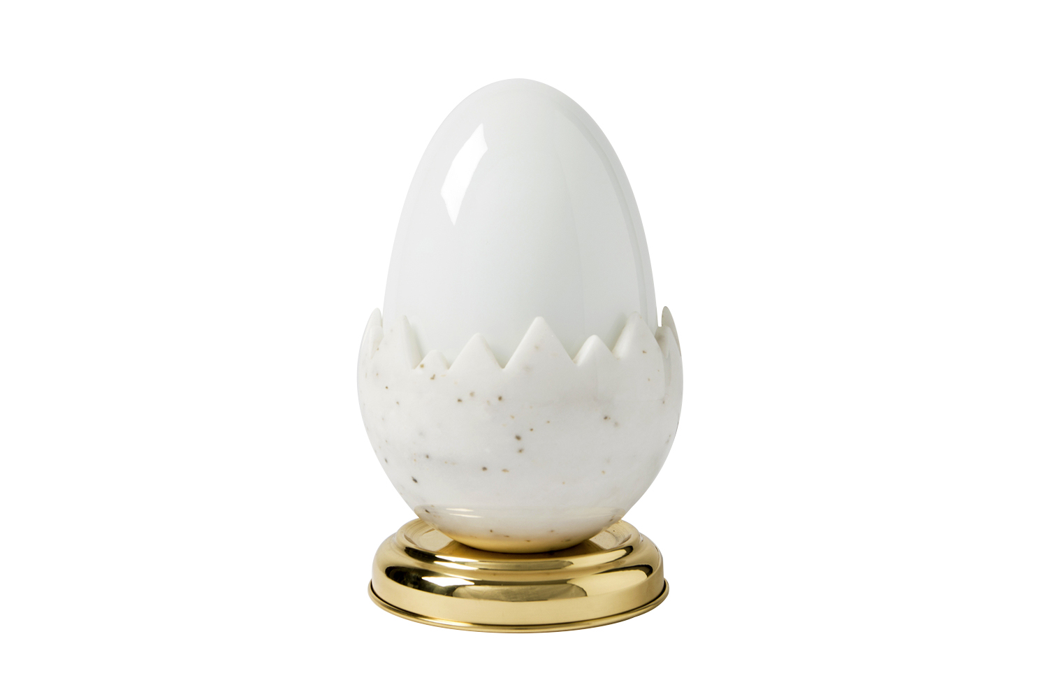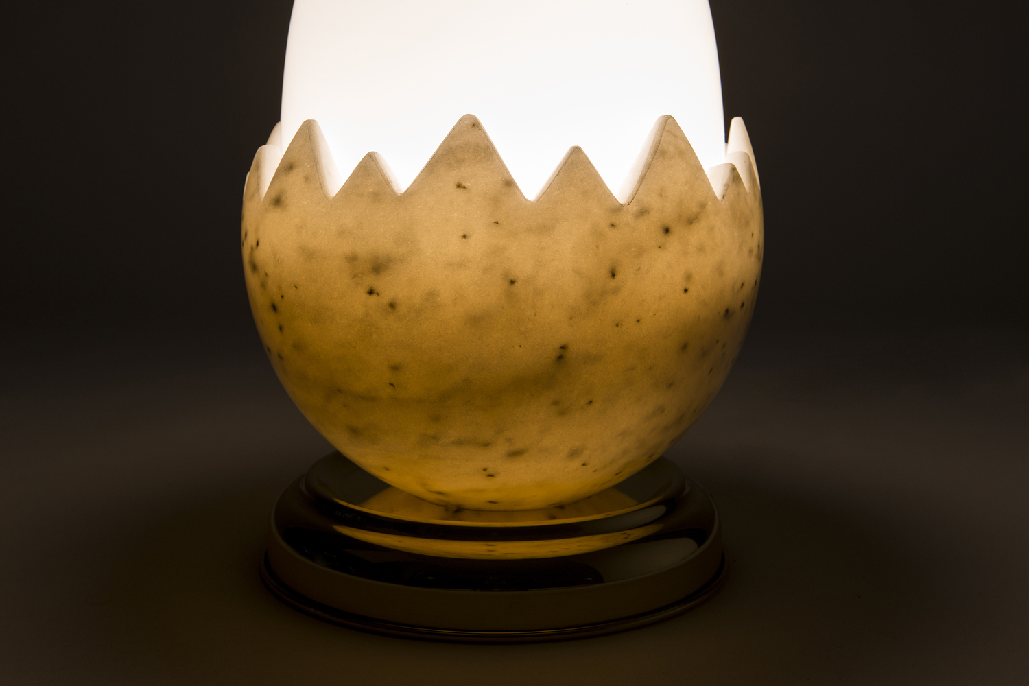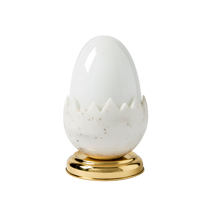 Oviraptor以恐龙蛋化石命名,类似于一个巨大的鸡蛋,外壳由玻璃和大理石制成。抛光的黄铜底座为这款照明产品增添了魅力,可用作台灯。 白色不透明玻璃和大理石外壳散发出宜人,温暖的光线。 大理石部分是手工雕塑,与黄铜底座相连。