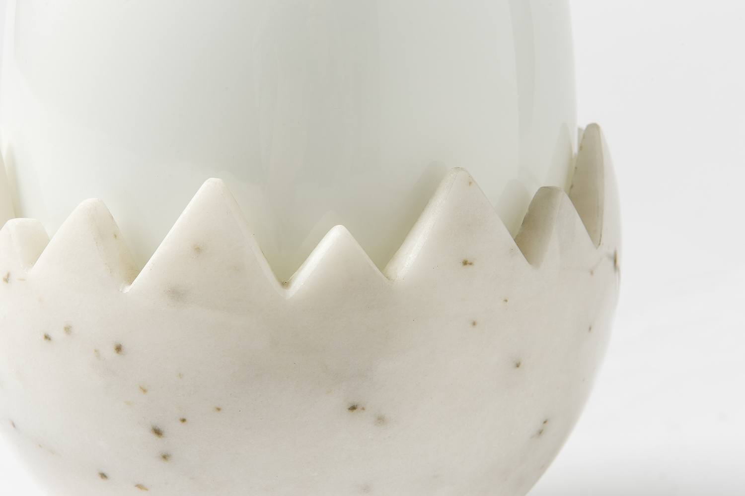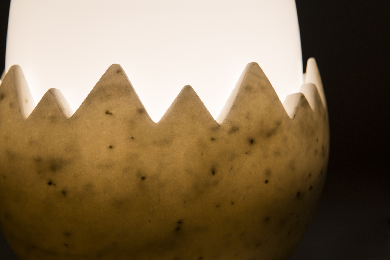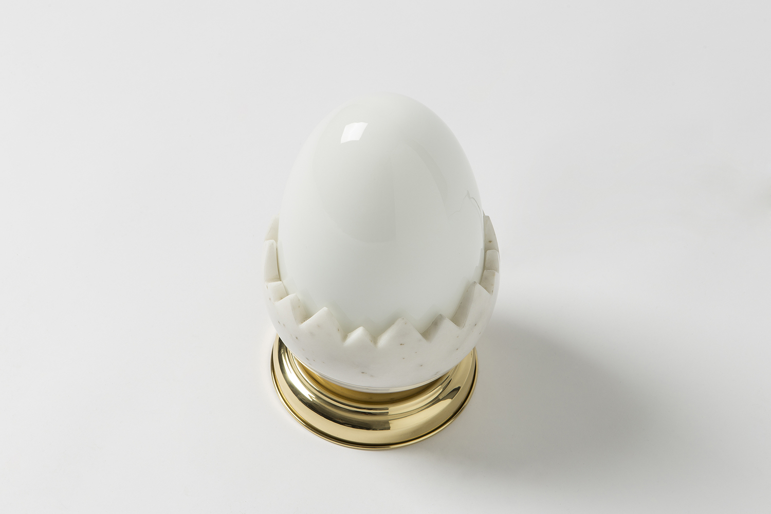 Oviraptor以恐龙蛋化石命名,类似于一个巨大的鸡蛋,外壳由玻璃和大理石制成。抛光的黄铜底座为这款照明产品增添了魅力,可用作台灯。 白色不透明玻璃和大理石外壳散发出宜人,温暖的光线。 大理石部分是手工雕塑,与黄铜底座相连。