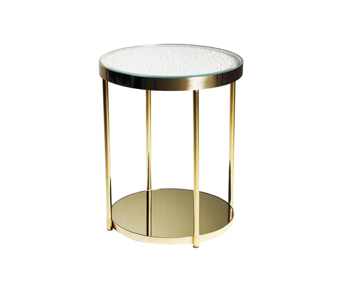 Hemlock是限量版咖啡桌。 它的爆米花般的质地是漆画工作室自然过程的最终结果; 多年来,一层层的副产品在墙壁上生长和形成。 通过对这种独特的材料(通常是废品)进行再循环,Hemlock已经被创建。 黄铜饰面和底部的金色镜子完成了铁杉的独特外观,而底部镜子中表面照片的反射产生了幻觉。
