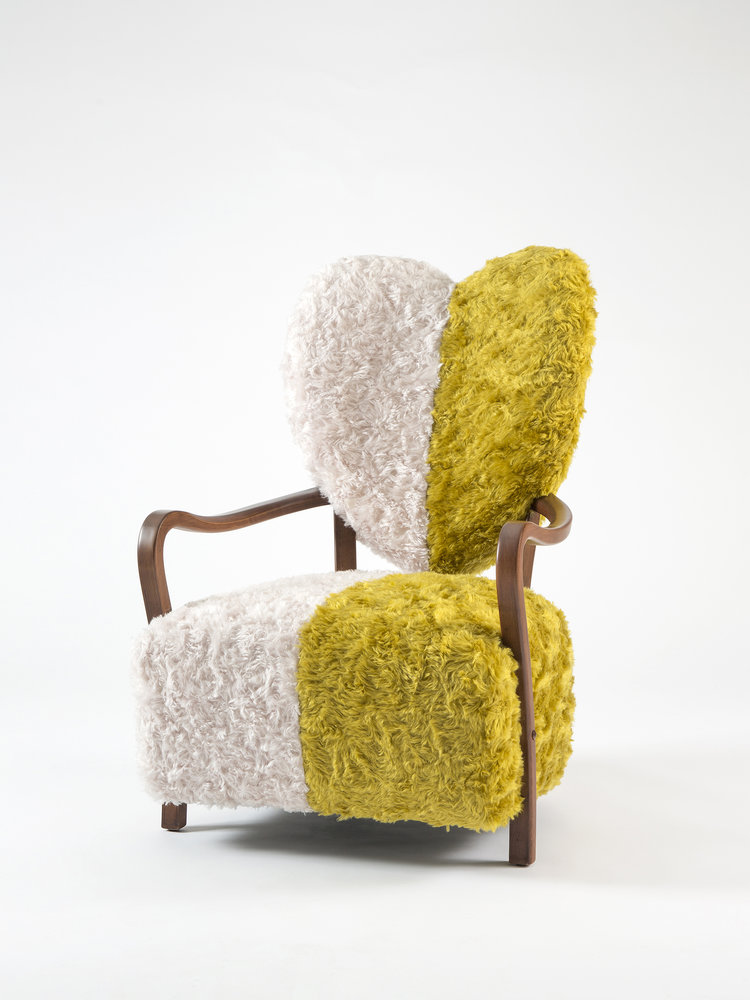 Uni装有来自安哥拉山羊的100%马海毛。 深卷曲的桩子创造了被包围的感觉,同时也捕捉光线。