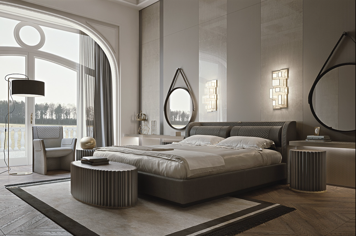古典风格满足现代性在这床上流畅简洁的线条,丰富的床头板,优雅的刺绣和珍贵的拉链。