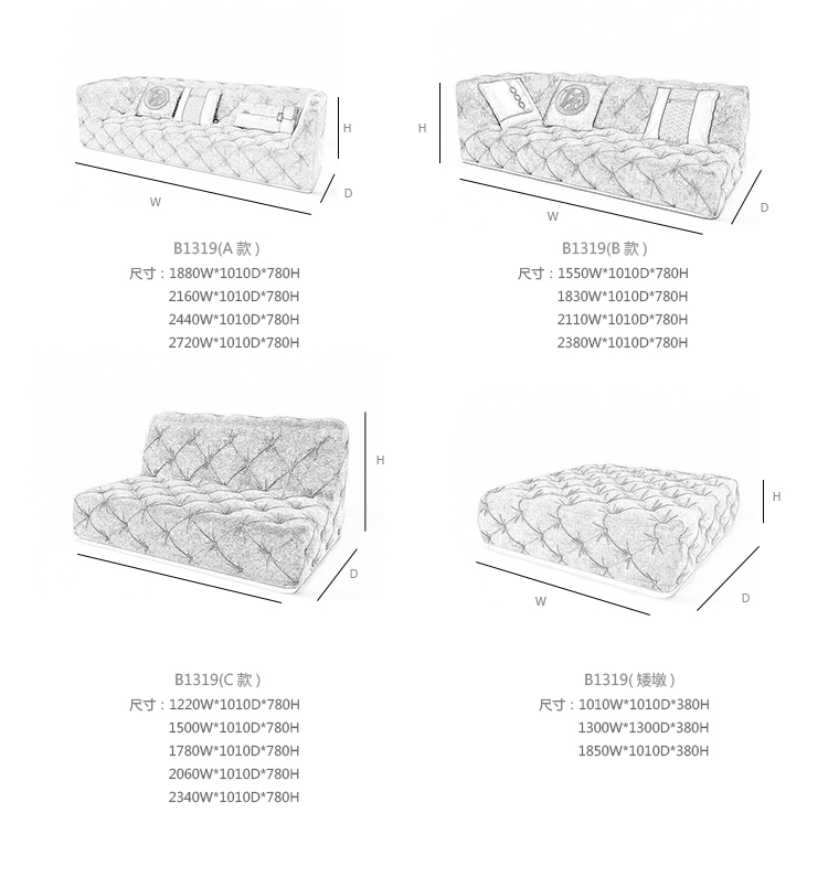 Caracciolo 沙发 系列尺寸/示意图